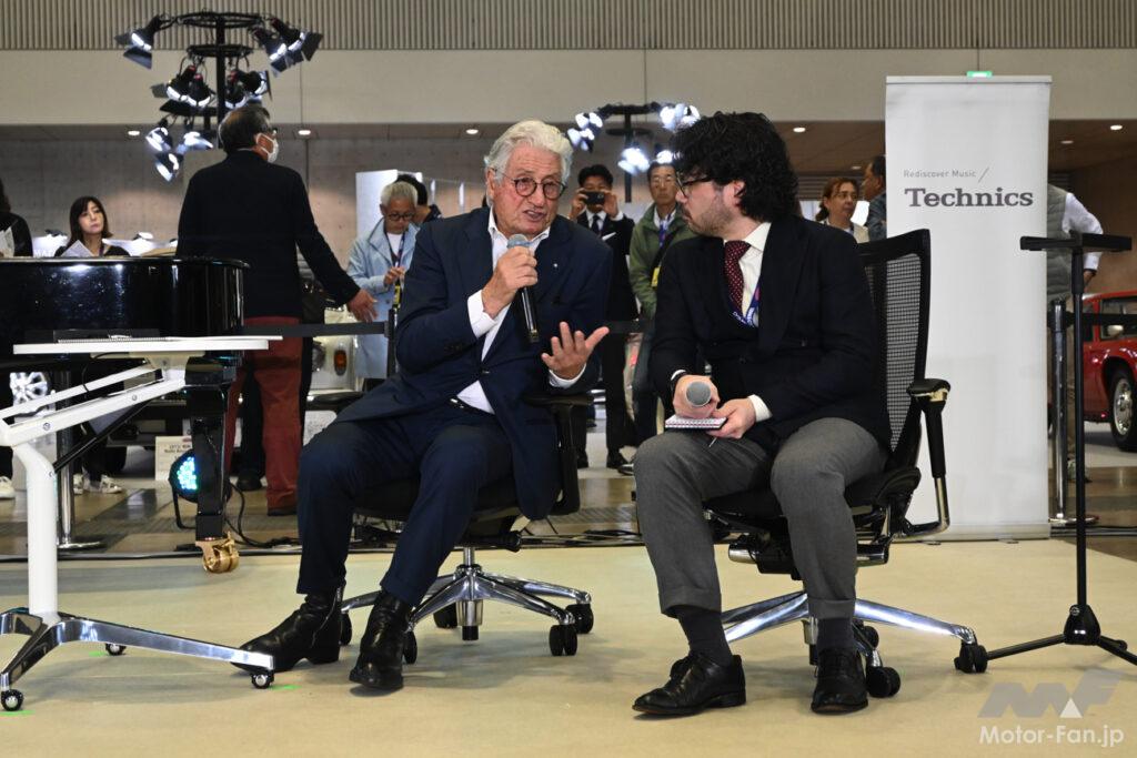 初日の11日(金)に開催されたトークショーのテーマは「 “A Young Talented Designer was Born” 才気あふれる若きデザイナー誕生」で、若き日のジウジアーロ氏がフィアットに入社し、ベルトーネを経てカロッツェリア・ギアに移籍するまでの話題が、株式会社カーグラフィックの代表にして『オートモビルカウンシル』実行委員会共同代表の加藤哲也氏、通訳にカーグラフィック編集長の小野光陽氏を交えて開催された。