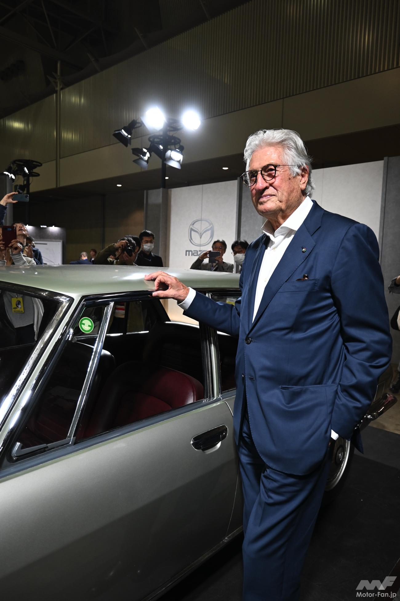 当初、東洋工業(現・マツダ)は、S8Pをロータリーエンジンを縦置きで搭載したFWDレイアウトの上級ファミリーカーとして企画しており、その開発コンセプトに沿ったデザインをギアに在籍していたジウジアーロ氏へと発注したのだ。東洋工業とジウジアーロ氏の橋渡しをしたのが、オートバイで世界一周旅行をし、イタリアを訪れたときにマリーザ夫人と運命的に出会い、結婚・永住した日本人の宮川秀之氏だった。