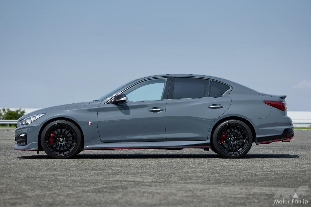 一方のスカイラインNISMOは、全長4835mm×全幅1820mm×全高1440mmと、セダンらしい伸びやかなプロポーションを持つ。