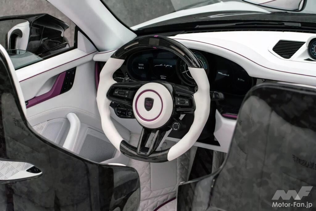 新型ターボチャージャーが追加され、最高出力888ps、最大1050Nmを発揮。随所に配された鍛造カーボンパーツが、エクステリアを劇的に変化させており、ド派手チューナー「マンソリー」の真骨頂と言えそうだ。