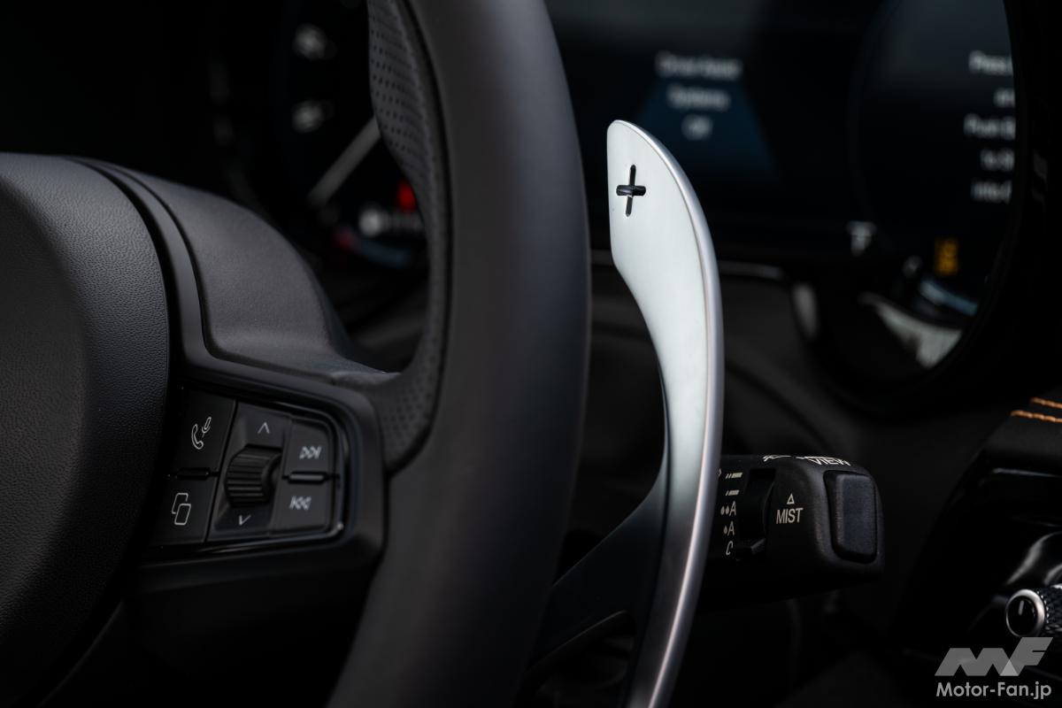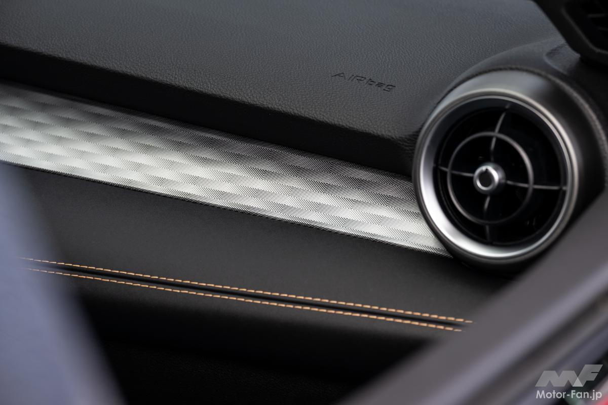 専用設計のインテリアには、レザーカラーのステッチを施したブラックアルカンターラシート、アルカンターラ張りのダッシュボード、ツートーンレザーのステアリングホイールが採用されている。デュアルモードアクティブサスペンションシステム、レベル2ドライバーアシストシステムも搭載され、優れたドライビングダイナミズムを発揮する。