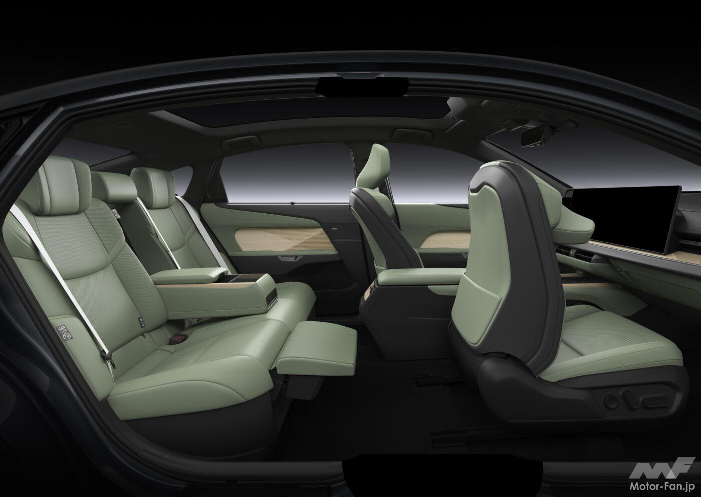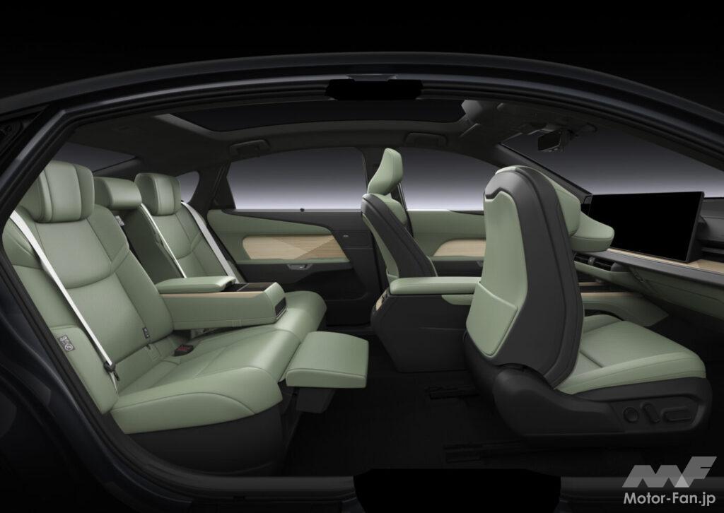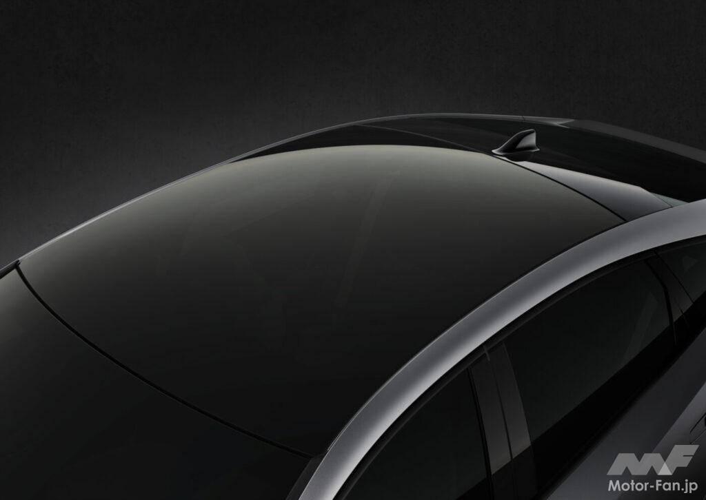 従来に対し、BEV車もラインナップされることから、床下バッテリー搭載と室内居住性を両立させる全高を前提に、セダンが最も美しく見えるプロポーションを追求した。