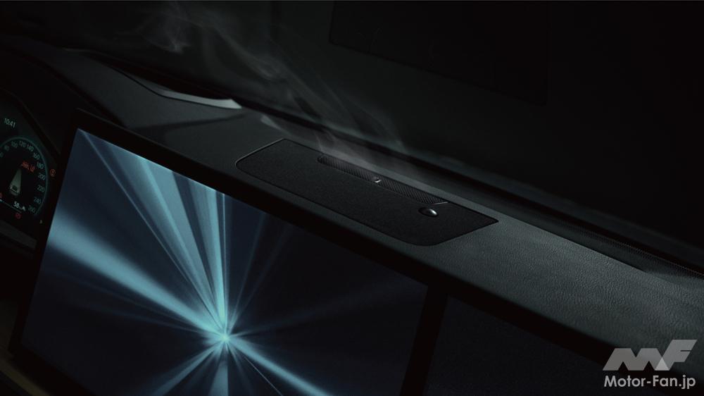 イルミネーション、音楽、マルチメディア動画、空調、シートバックとシートクッションに内蔵するエアブラダーが大腿部から背中までを押圧するリラクゼーション機能やヒーターが連動し、乗員の気持ちの寄り添う3つのモードで乗員をリラックスさせたり、高揚させたりする車内空間を提供するという。