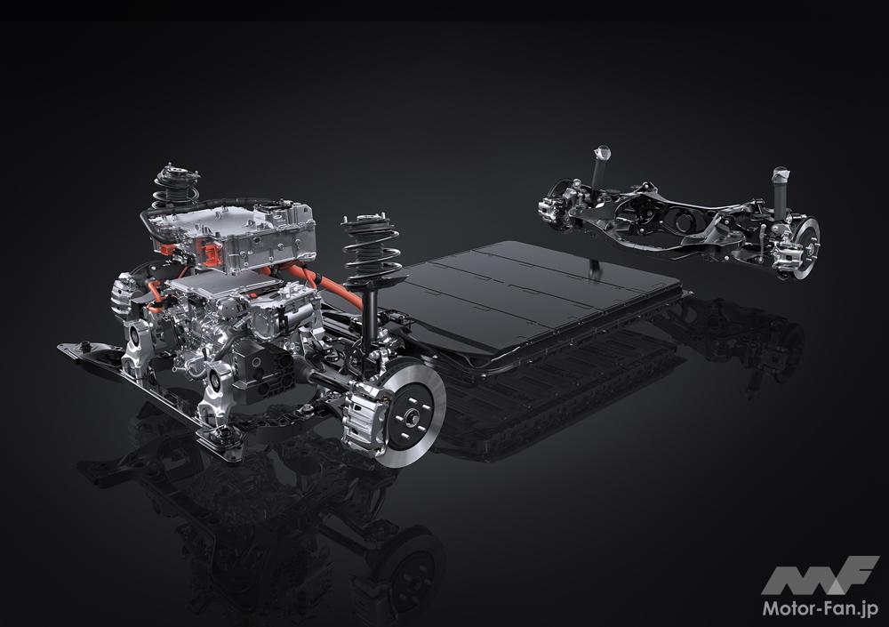新2.5Lは、パワーコントロールユニットとトランスアクスルを一体化した「eAxle」がパワーユニットの小型軽量化に寄与すると同時に高出力化を実現。新2.5Lエンジンとのコンビネーションと専用制御ロジックにより、優れた加速性能と低燃費を高次元で両立させているという。
