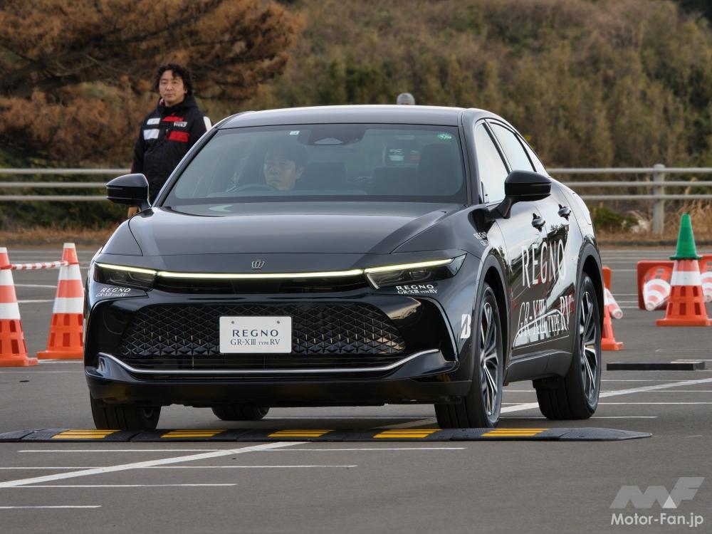 今回はそんな『レグノGR-XⅢ TYPE RV』に試乗する機会に恵まれた。まずパイロンコースでは、従来のGRVⅡと比較してスラロームやレーンチェンジがスムーズになっていることを実感。コンフォート性能を重視しながらも、応答性の高いハンドリングに舌を巻いた。単に静かで快適なだけでなく、しなやかさと走行性能が両立されている。