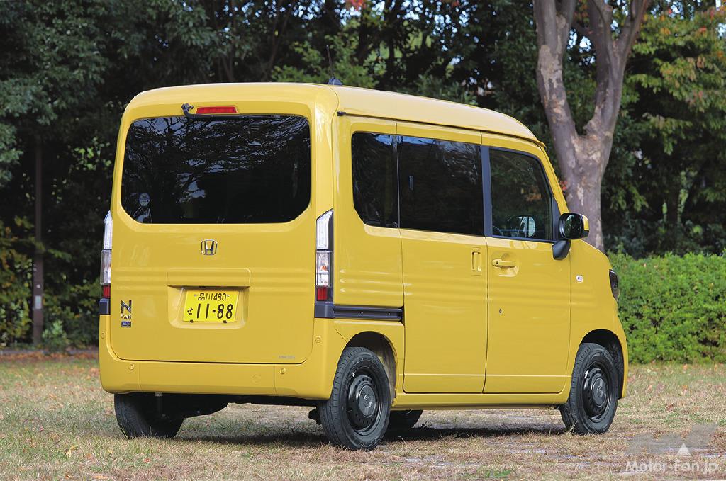 N-VAN比170㎏の重量増が乗り心地とカーブでの安定感に効く低重心パッケージが活かされているのだろう。ただ、動力源が静かなだけに商用車用タイヤが発するロードノイズが目立つものの、軽商用車であることを思い出せば、納得もできるというものだろう。