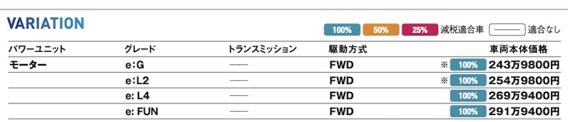 それが軽商用車のN-VANをベースにBEV(電気自動車)化されたN―VAN e:だ。配送業を中心とする企業、法人向けを基本としたひとり乗り、タンデムのふたり乗りの「e:G」、「e:L2」(ホンダの法人営業部、およびホンダのオンラインストアのリース契約のみ)、そして個人事業主、一般ユーザーの乗用ユースにも向く4人乗りのスタンダードモデル「e:L4」、そして仕事にも一般ユーザーのレジャーユースにも適する「e:FUN」(ホンダの法人営業部のリース契約/売り切りとホンダのオンラインストアのリース契約)を用意する。最大積載量は300㎏。段ボール箱を最大71個積める大容量の積載性が自慢だ。