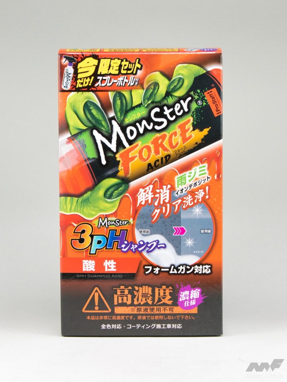 コーティングやワックスの効果をいかんなく発揮するためには、下地処理が肝心。モンスターの『3pHシャンプー』を使えば、長年蓄積した頑固汚れを効率よくリセットすることが可能というわけだ。