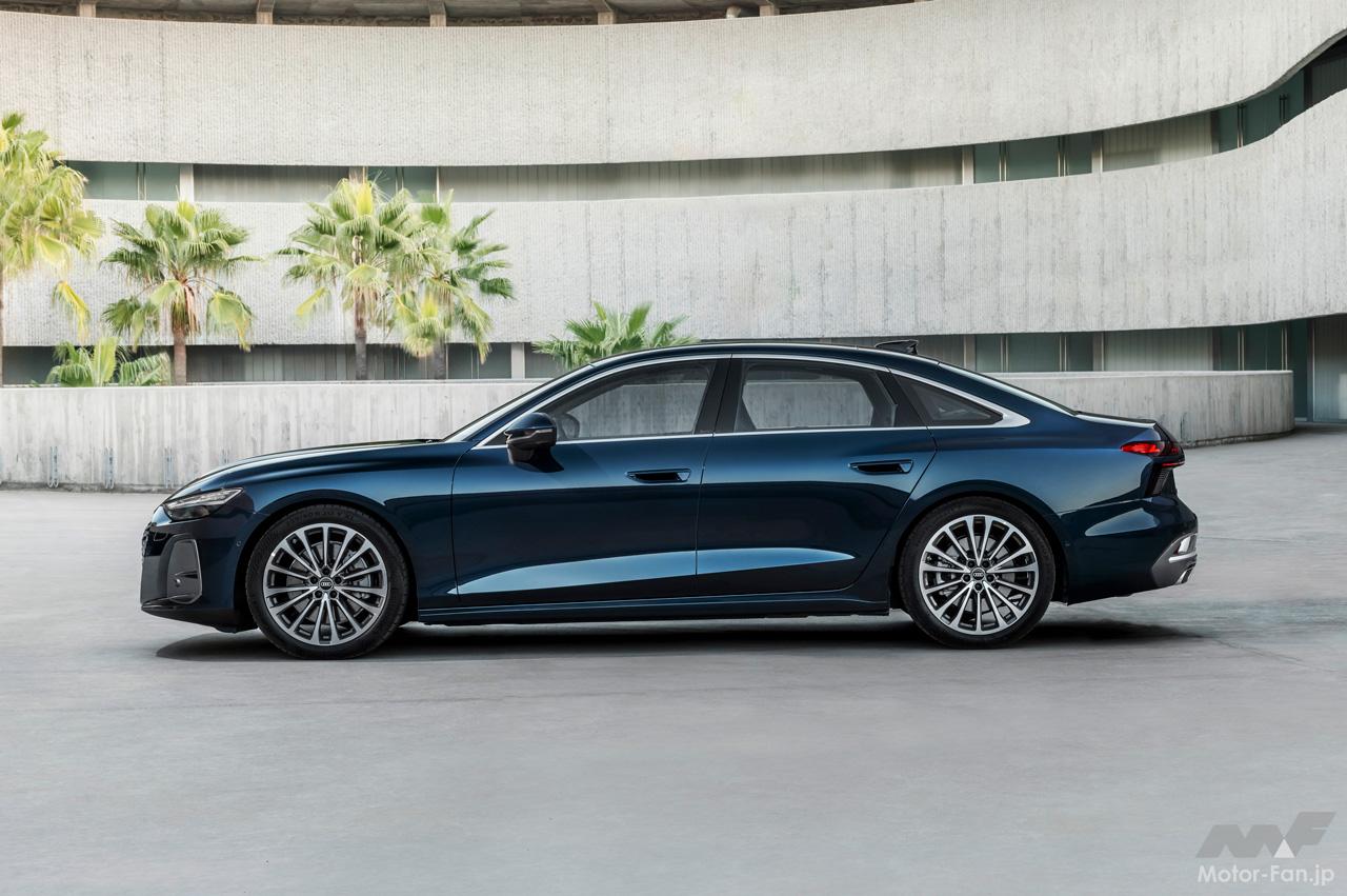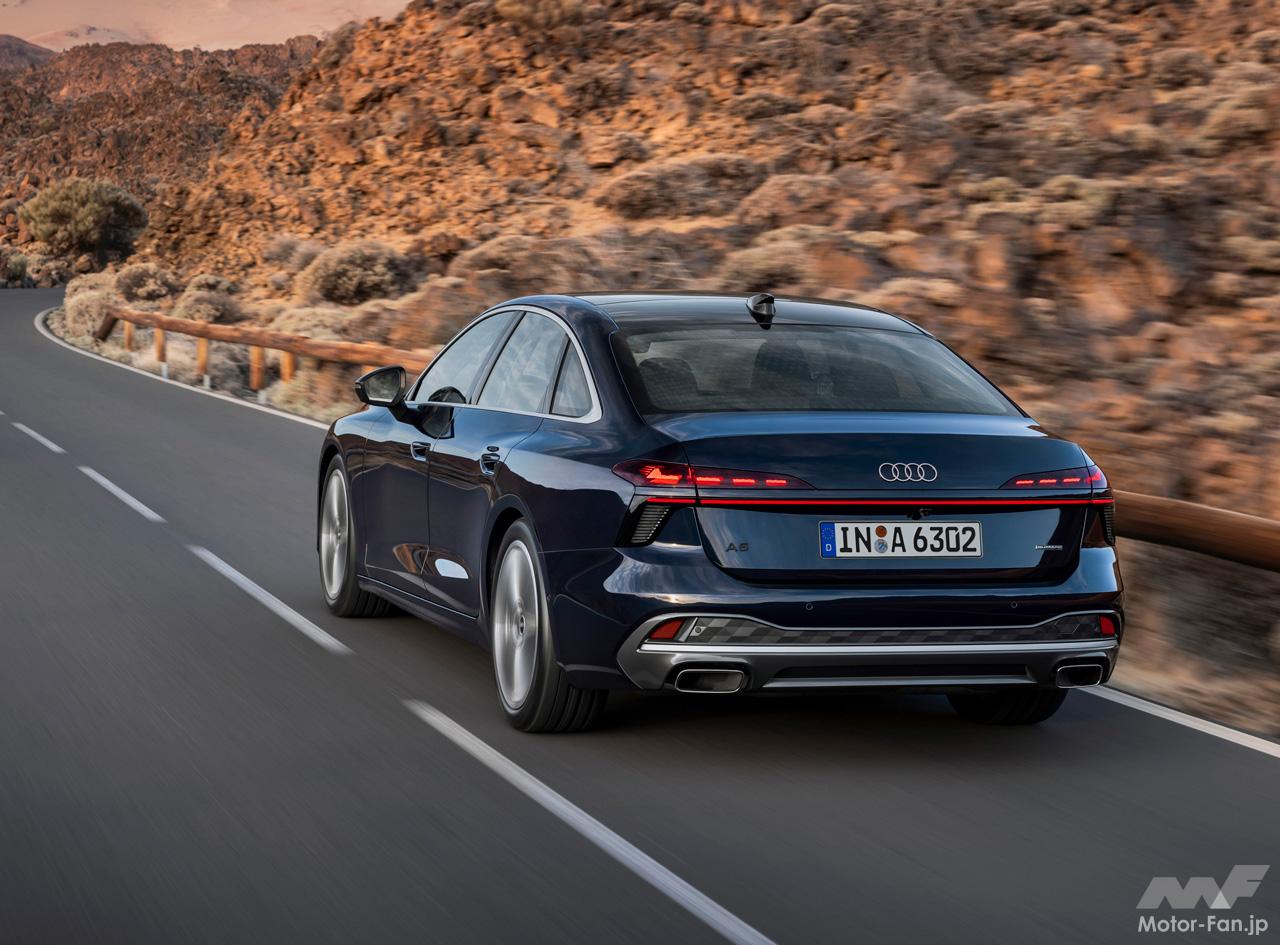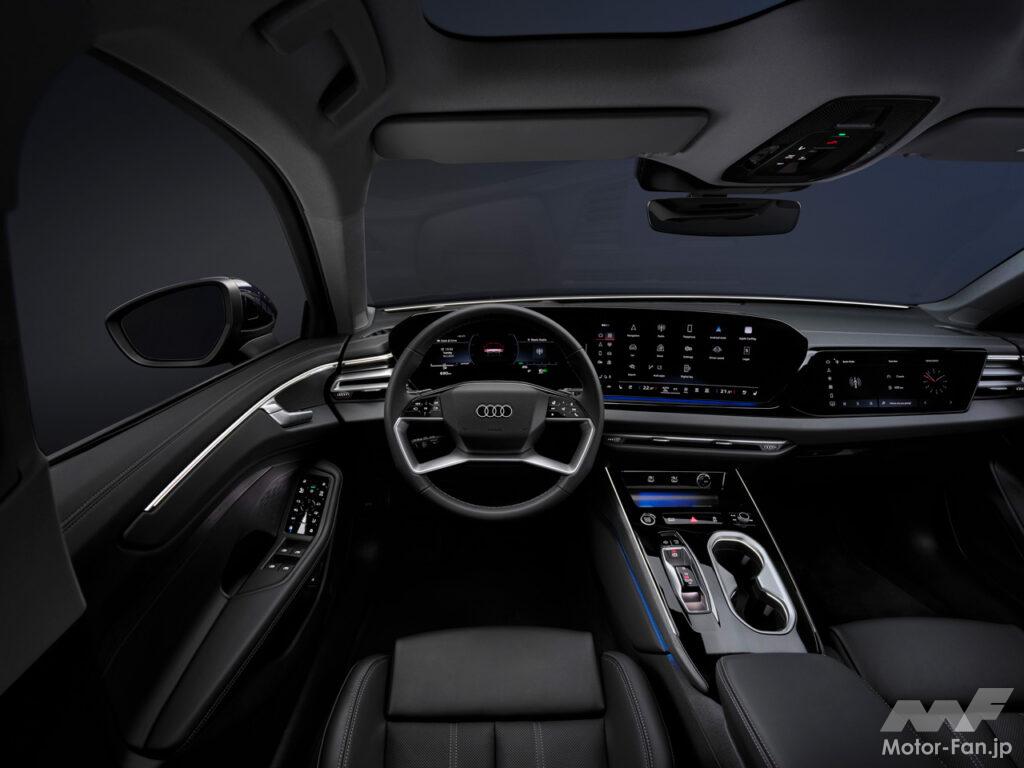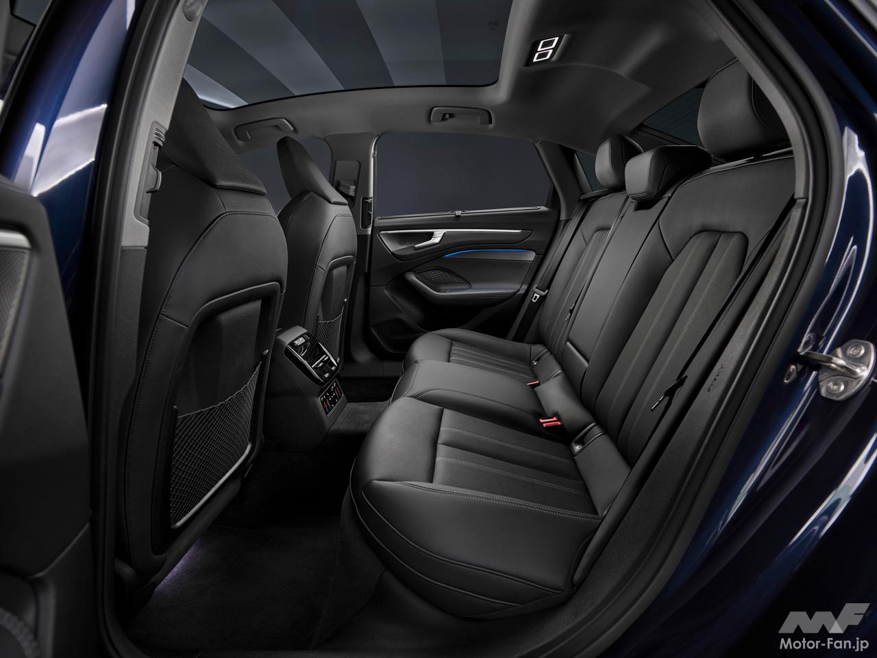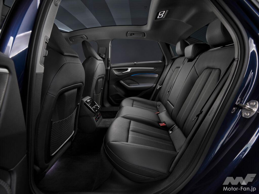 ボディサイズは全長4999×全幅1875×全高1452mmで、ホイールベースは2923mm。ルックスは明快で機能的だ。無駄を削ぎ落としたアウディ特有のデザインは、エレガンスとスポーティさを融合している。このフォルムは一方で、内燃エンジンを積むアウディ量産車で史上最高となる0.23の空気抵抗係数(Cd値)を誇る。