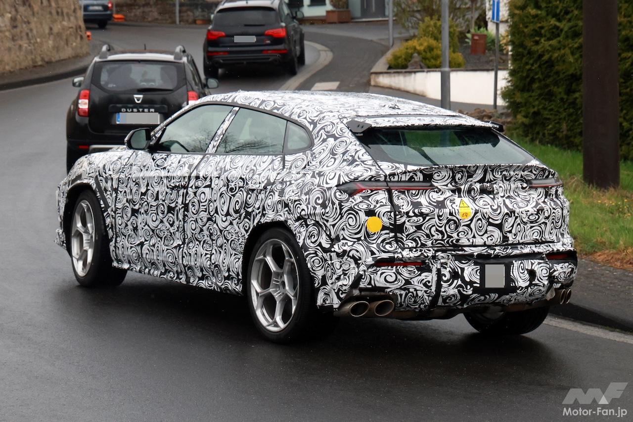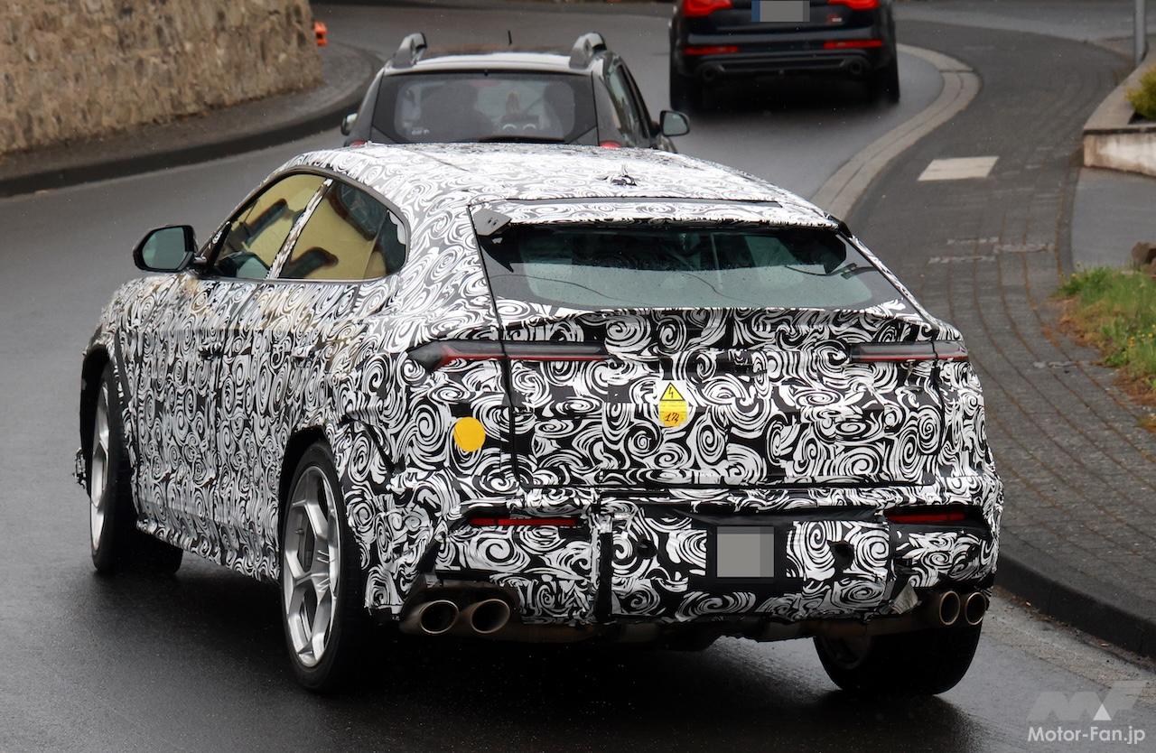 ウルス SEと一緒にスパイされたこの新型車は、ヘッドライトにウルスSEと同様のLEDデイタイムランニングライトが見てとれる。しかし、再設計されたラジエーターグリル、通気口、バンパーをはじめ、いくつかのスタイル上の違いが見られる。また、下部スポイラーはより頑丈になり、フロント吸気グリルは狭く設計されているようだ。