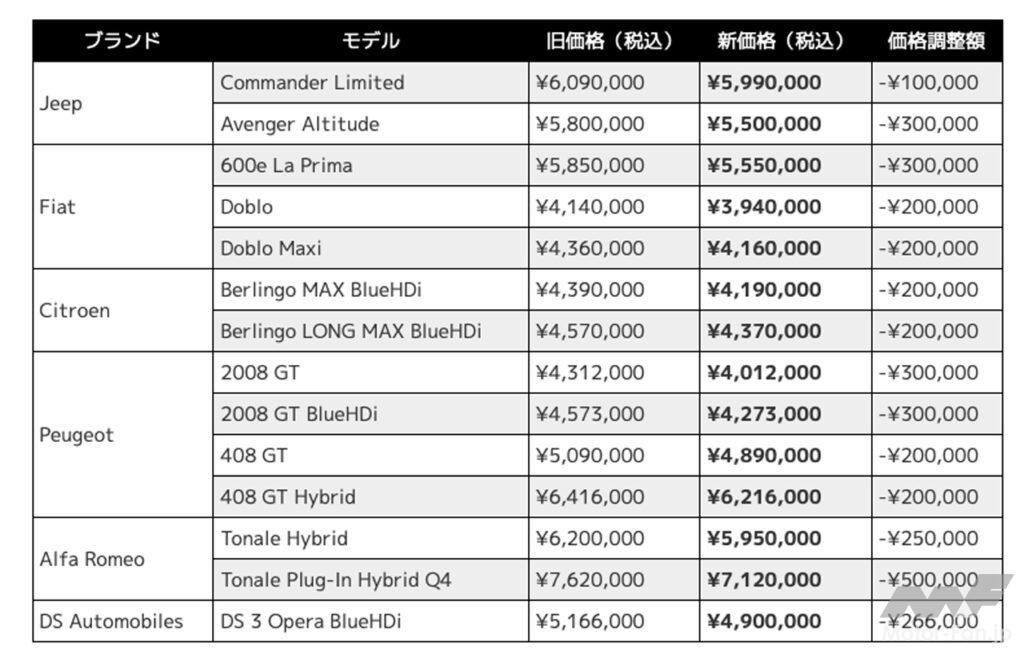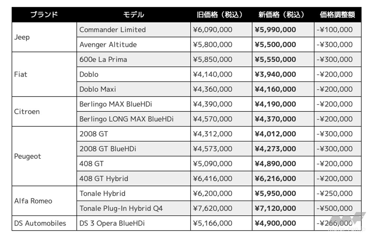 「昨今の不確実性の高い経済および社会の環境において、お客様にとって魅力あるブランド、魅力ある製品であり続けることを目指し、ステランティスジャパンが有する6ブランドの人気モデルを対象に、販売価格(メーカー希望小売価格)の改定を実施いたします。