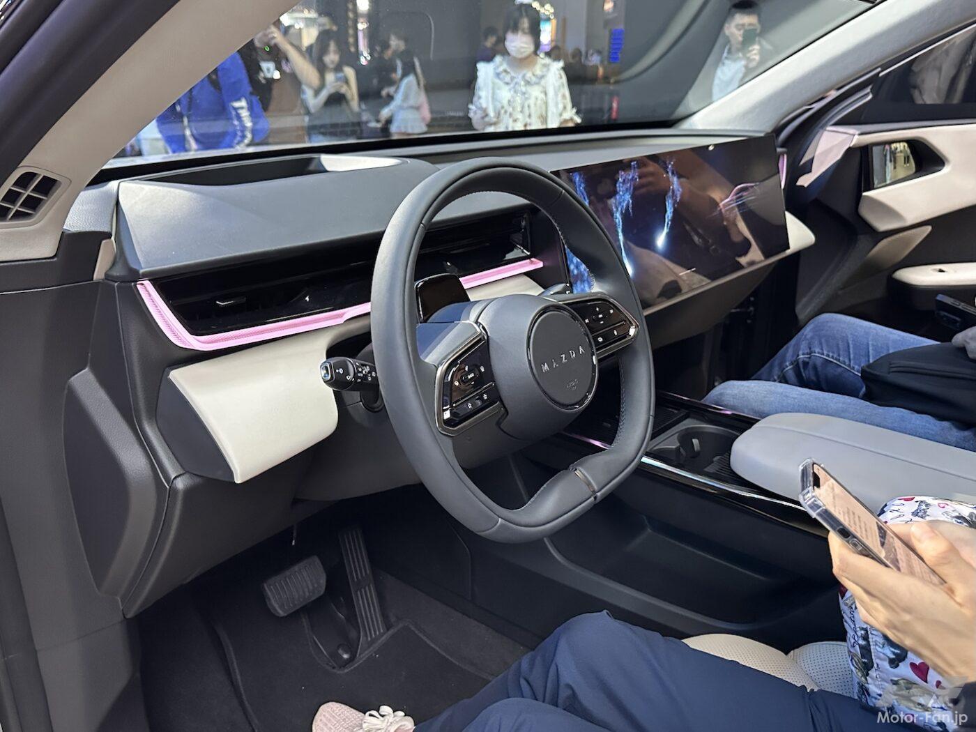 BEVのバッテリーサイズは未発表だが、航続距離は600kmだ。バッテリー容量は56.1 kWh/68.8kWh。68.8kWh版が600km、56.1kWh版が480kmとなっている。400Vアーキテクチャーで200kWの急速充電が可能(EZ-6の欧州版、MAZDA 6eと同じなら)だ。
