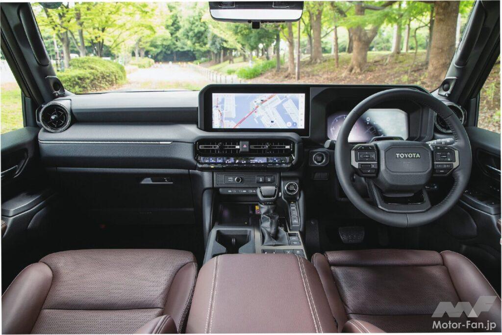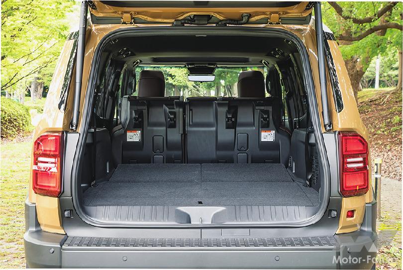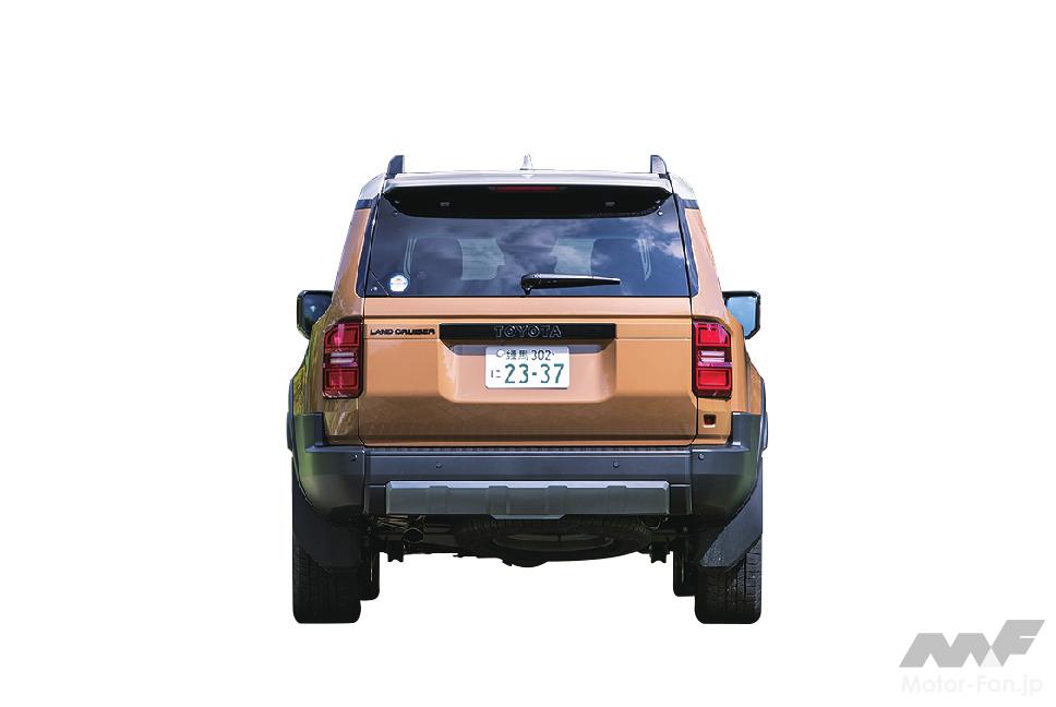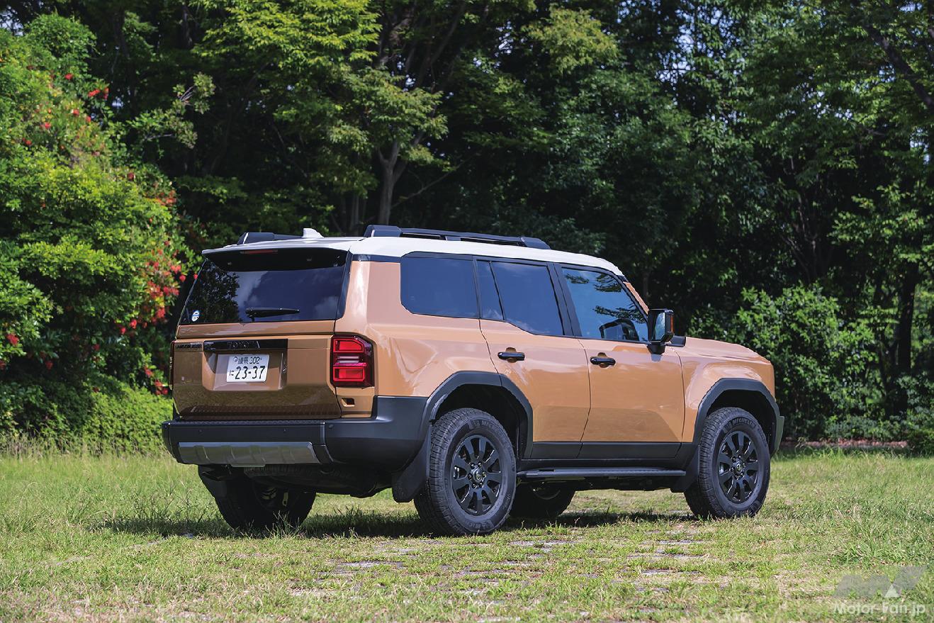 実質的にはランクルプラドの後継だが、ネーミングを新たにしたのは原点回帰する意思の表れでもある。というのも「人々の生活を支える」がランクルの使命であるのに対してランクルプラドは、競合に引っ張られて高級・豪華路線に走ったきらいがあったことを反省したからだ。プラットフォームはランクル300と同様のGA-Fでボディ・オン・フレーム構造。だからボディサイズはランクル300に近く、ホイールベースも同一なのだが、全長は70㎜短くなっている。スタビライザーの位置を変更するなどしてフロントオーバーハングを切り詰め、取り回し性を高めたからだ。合わせてバンパーの角も削り落とされている。G-FGはランクル300から採用されたもので、ランクルプラドに比べるとフレーム剛性は50%向上、車両全体でも30%の向上となった。サスペンションは新開発され、オフロード走行時にタイヤが浮きづらくなるようジオメトリーが最適化された。