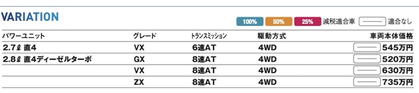 オンロードでの乗り心地もボディ・オン・フレーム構造としては、かなり洗練されている。高速道路のジョイントを通過しても突き上げ感がない上に、上下動が残ることもなくすっきりとしている。フレーム剛性が向上したことに加えて、サスペンションのフリクションを低減する工夫がなされているからだ。2.8ℓ直列4気筒のディーゼルエンジン+8速ATは街中から高速道路まで高いドライバビリティの持ち主で走りやすかった。