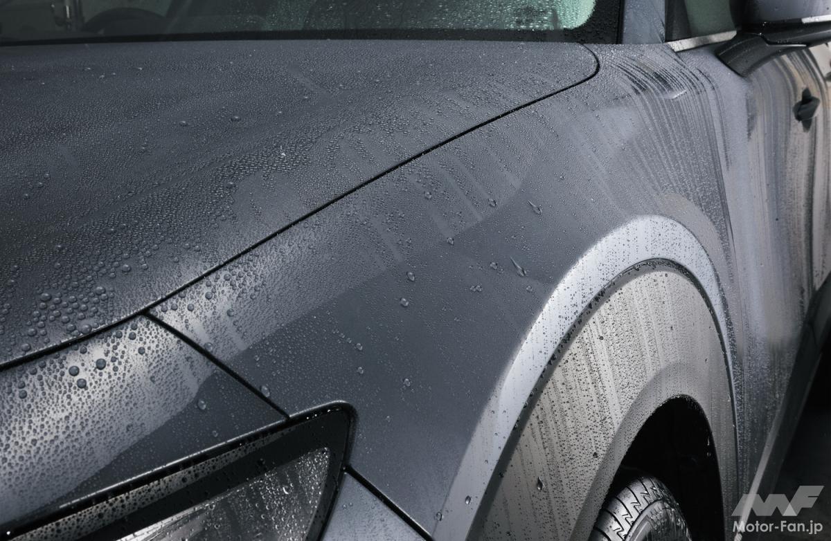 高性能の要となるのはオイル系レジンを独自処方していること。特許出願済みとなるこの高濃度レジンにより、ボディと黒樹脂パーツのツヤを深め、雨水を寄せ付けない撥水力を実現した。