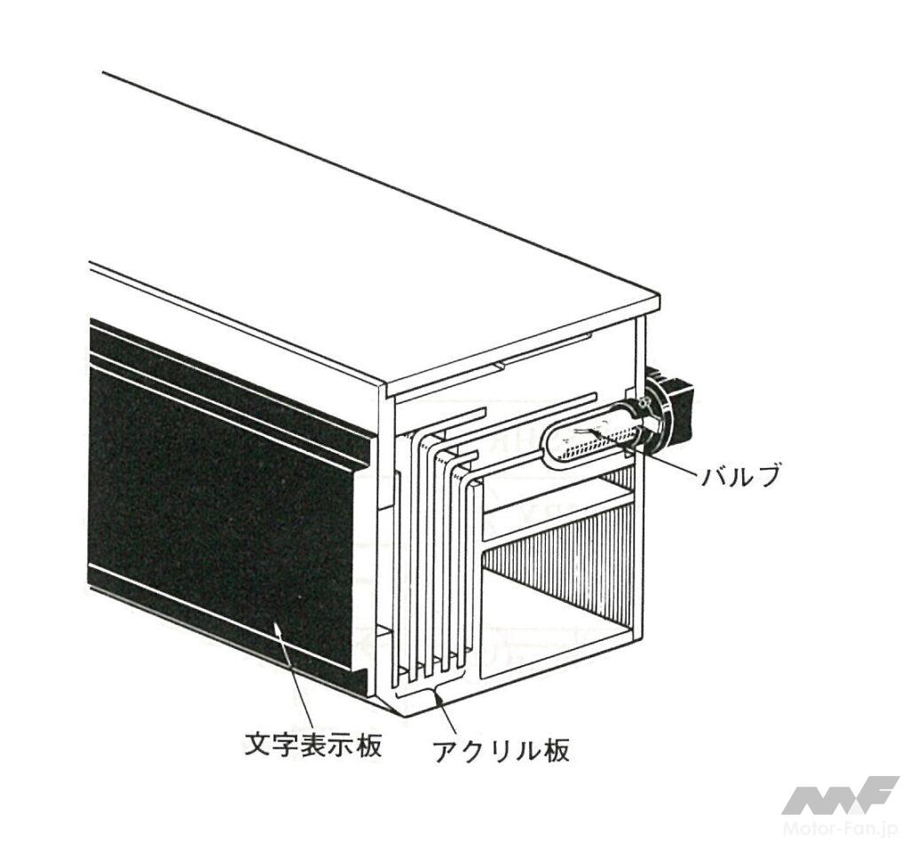 アクリル板の端面に仕組んだ電球光で、アクリル裏面に刻んだ点文字を浮かび上がらせる原理だ。