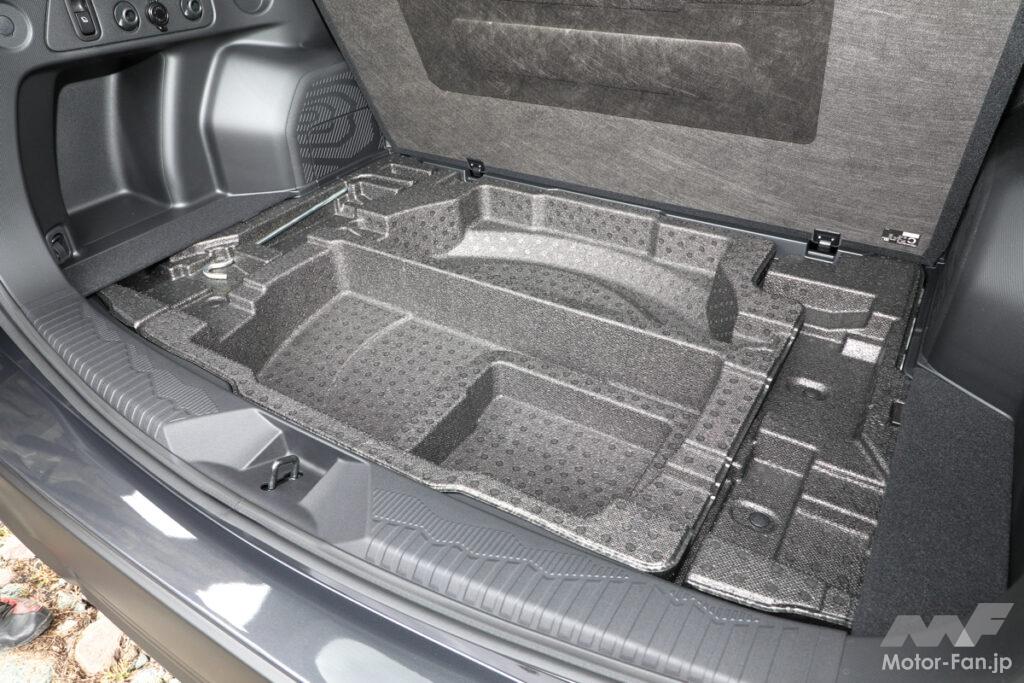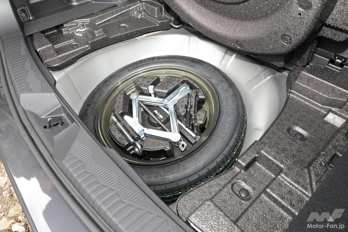 当然ながらSPORTでは、走行用バッテリーが搭載されないため、サブトランクの容量も大きく、スペアタイヤも搭載。ロングドライブ時の安心感という点ではテンパータイヤの存在は意外と大きい。