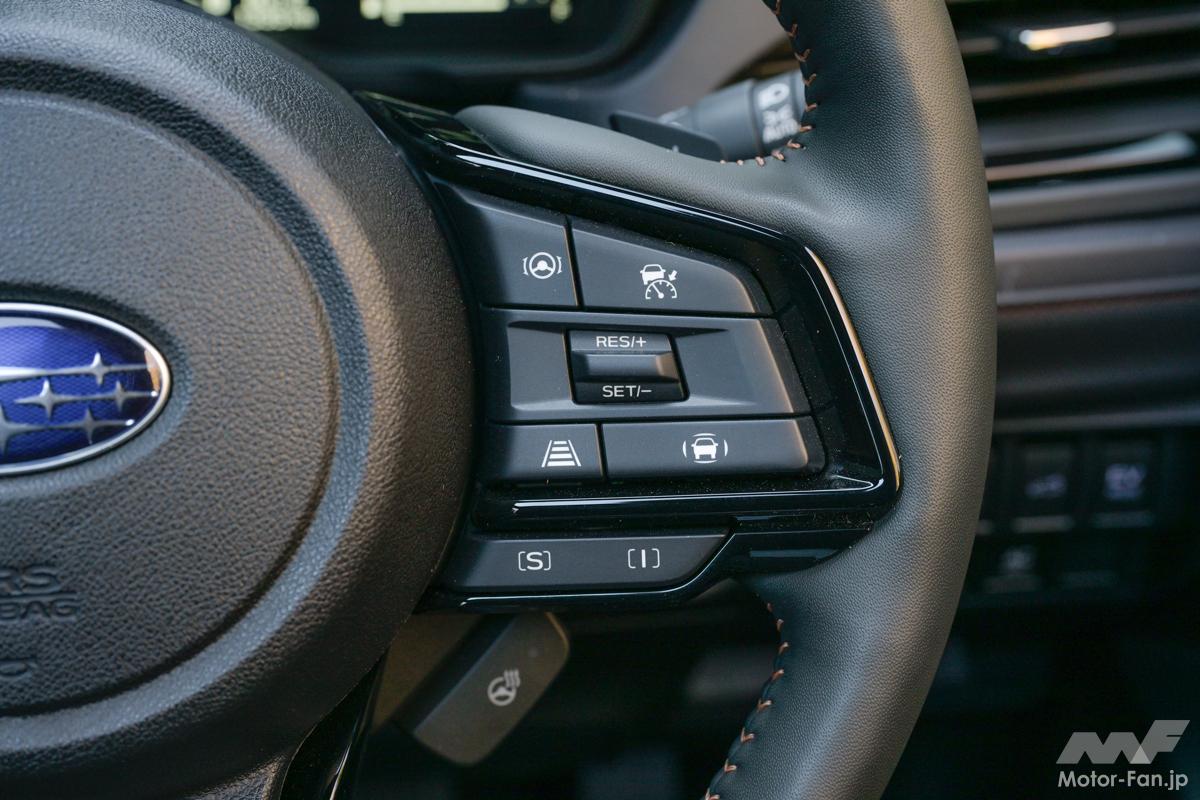 試乗した「SPORT EX」は、アイサイトXが搭載されているが、ドライバー異常時対応システムと呼ばれる機能に、アイサイトX登場時には装備されていなかったコールセンター自動接続機能(コネクティッドサービス契約が必要)が追加されている。長時間ハンドル操作がない場合など、自動的に減速、停止し、周囲へ警告。ドアロックの開錠をしてくれるというだけで、万が一の時の事故防止に役立つ機能だが、さらなる進化に驚くばかりだ。