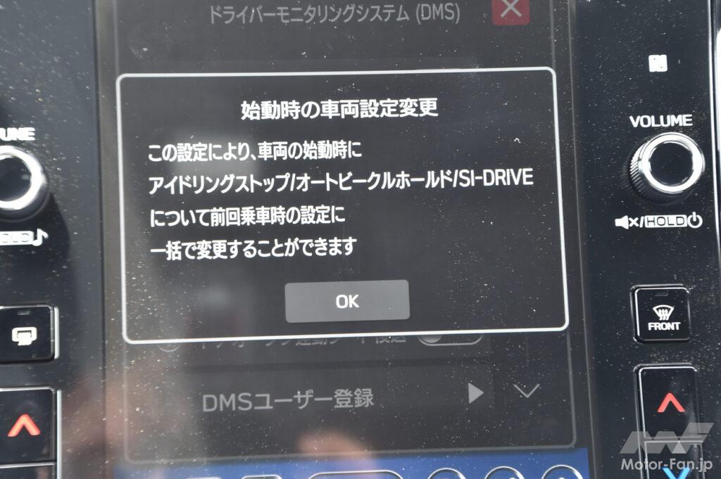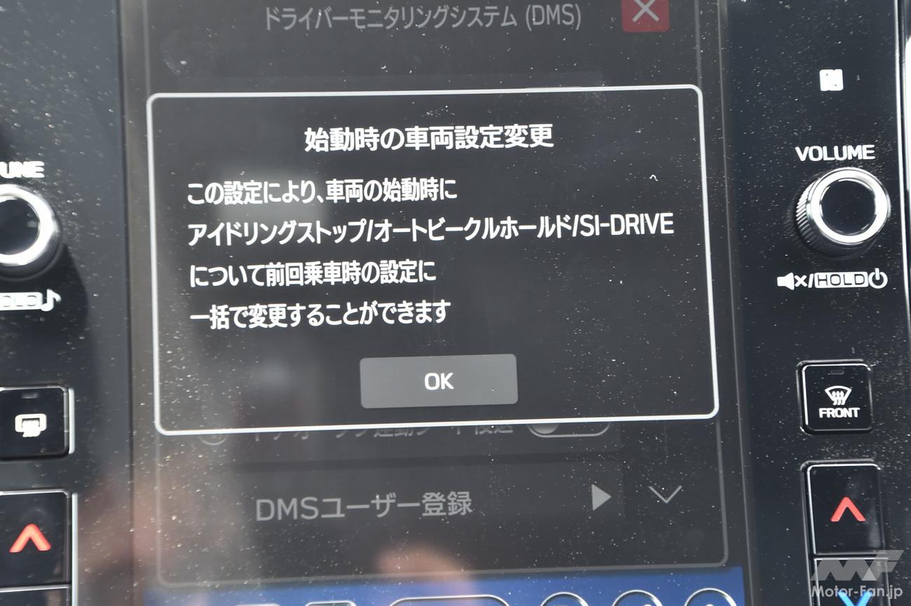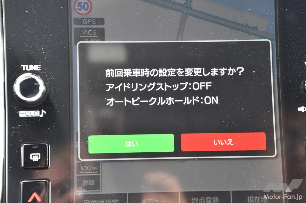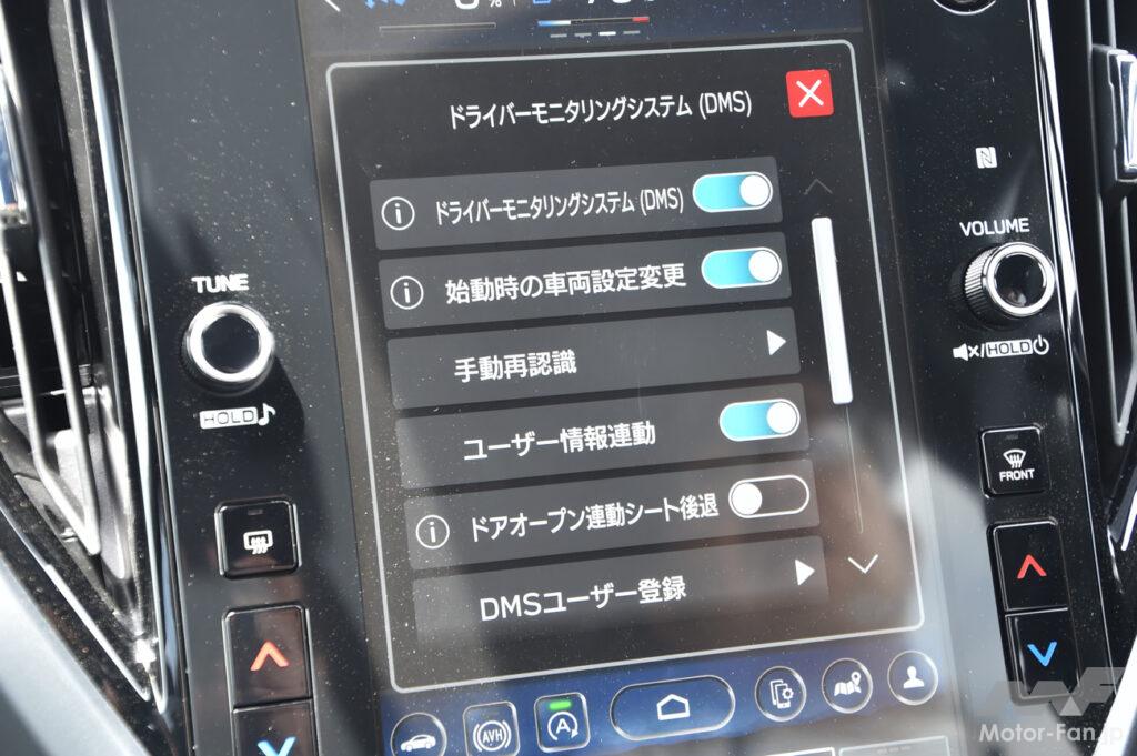 細かな部分では、アイドリングストップやAVH(オートビークルホールド)の設定を、DMS(ドライバーモニタリングシステム)と連携することで、乗車時に前回の設定をワンタッチで復帰できるようになった。