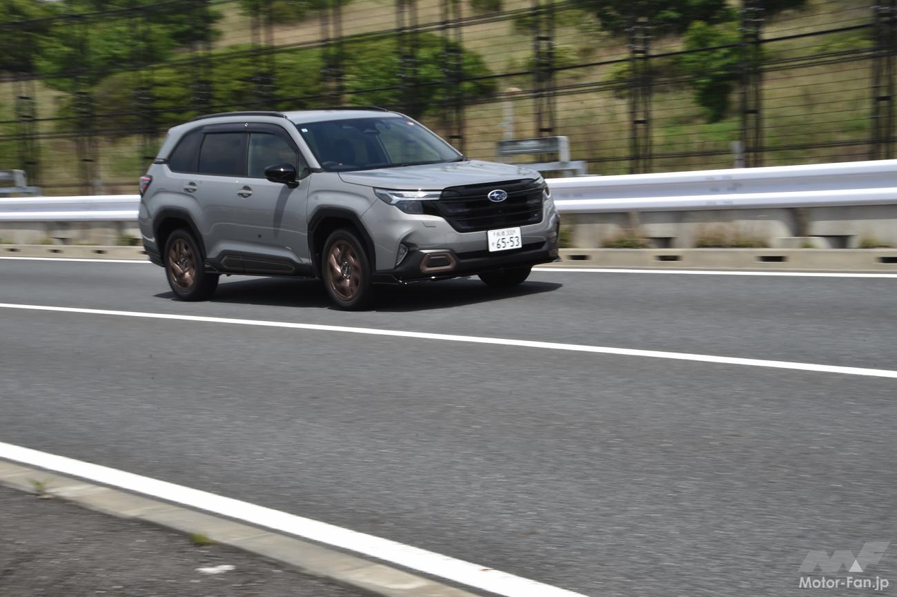 パワフルさという点ではS:HEVには一歩及ばないものの、車両重量が100kgも軽量な「SPORT」の走りはその名に相応しく軽快な印象。フルインナーフレーム構造に進化したSGP(Subaru Global Platform)の高い剛性感や応答性をピュアに感じることができるのだ。