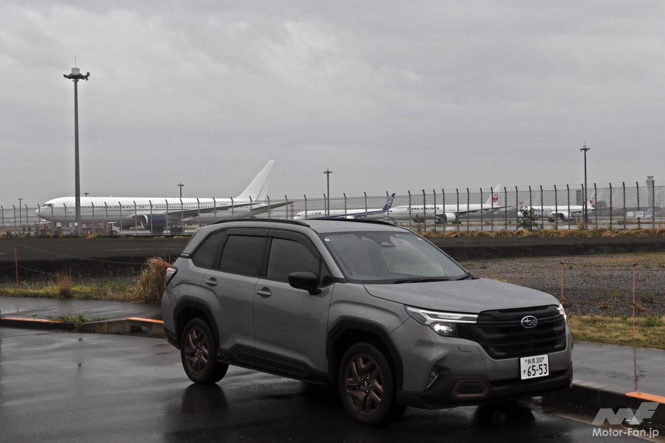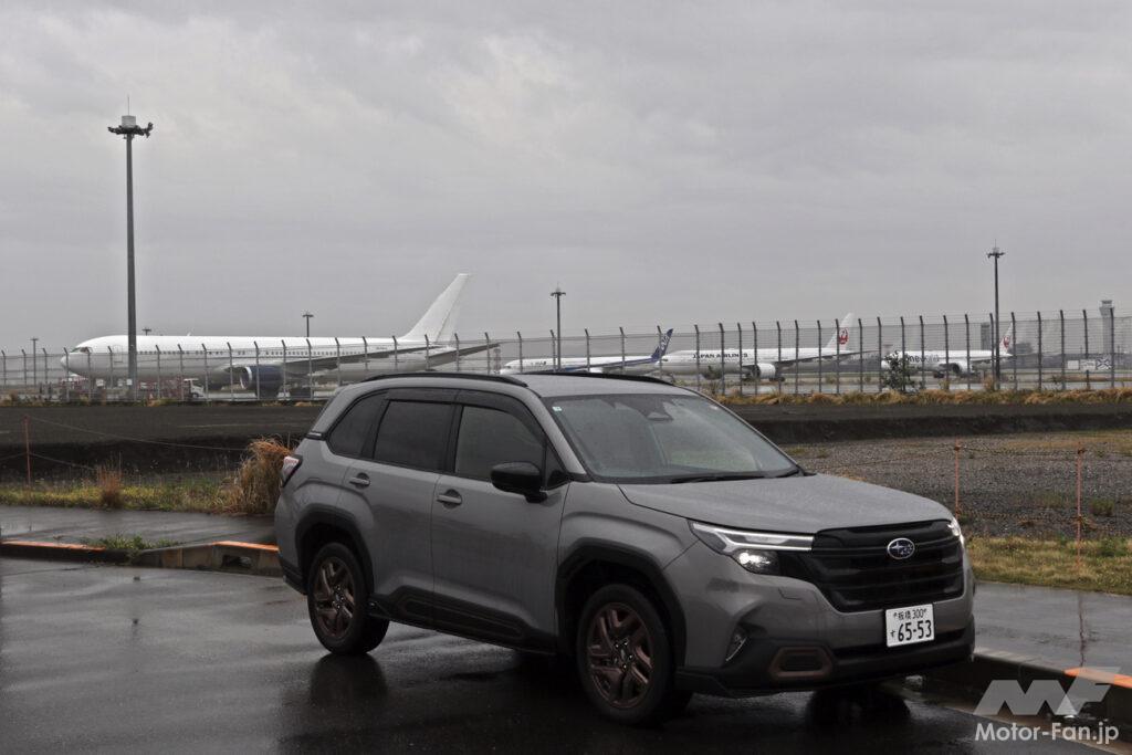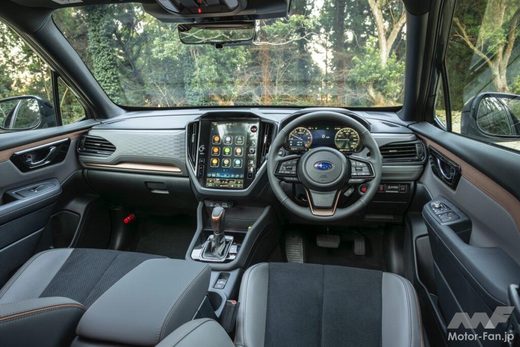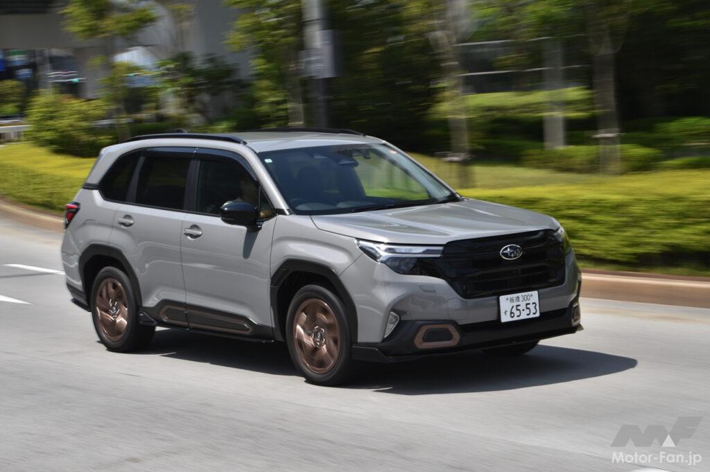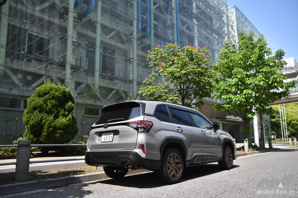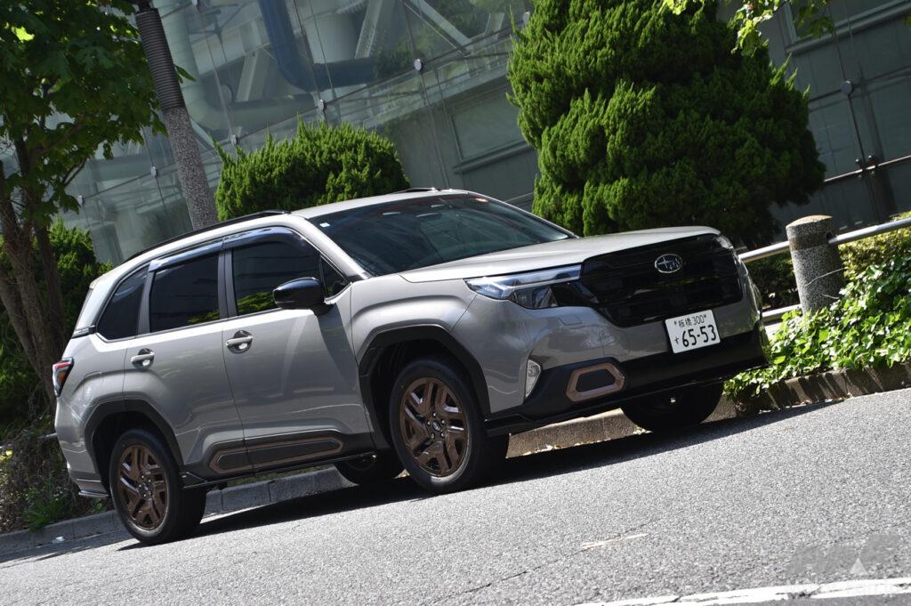 エクステリアは大きくデザインが変更され。先代までの武骨な印象から、都会的でスタイリッシュな佇まいへと変貌した。大きくイメージが変わったと感じるが、実車を目の当たりにすると、画像や動画からは感じることが難しい立体感や造形の懐深さにより、驚くほど違和感などはなく、すぐになじめる印象で、しっかり従来のフォレスターのもつ世界観を感じる。