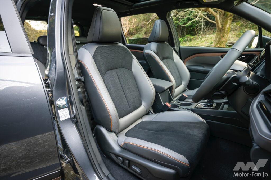 インテリアでは、話題の左右非対称形状のフロントシートが特徴的。センターコンソール側のショルダー部の形状を工夫し、後方確認時や、後席の荷物を取り出す際の振り返りやすさを追求。細かな部分だが実際に座ってみると、思わず笑ってしまうほど後ろを向きやすい。