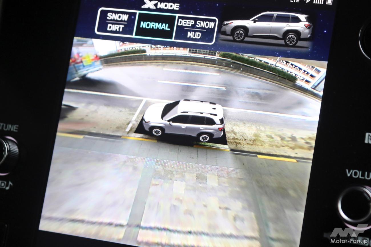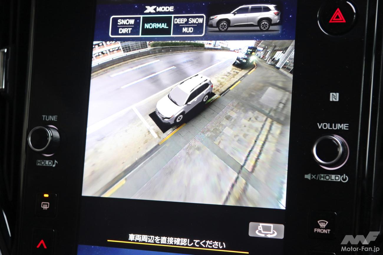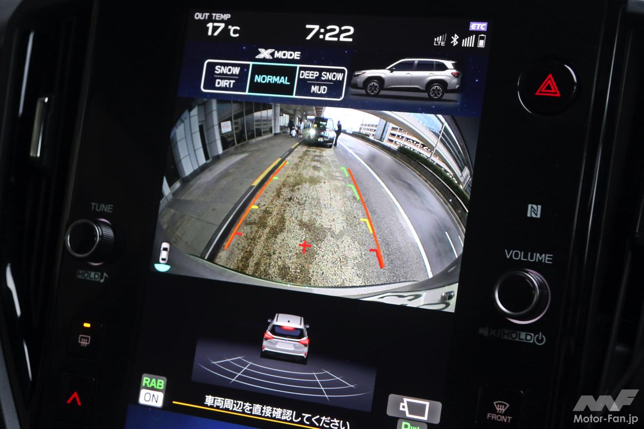 すべてのスバル車に共通するポイントだが、視界の良さとスクエアなボディ形状が車両感覚のつかみやすさに貢献してくれる。加えて、新型フォレスターでは全車にデジタルマルチビューモニターを標準装備し、視界拡張による車両周辺の確認をサポートしてくれる。