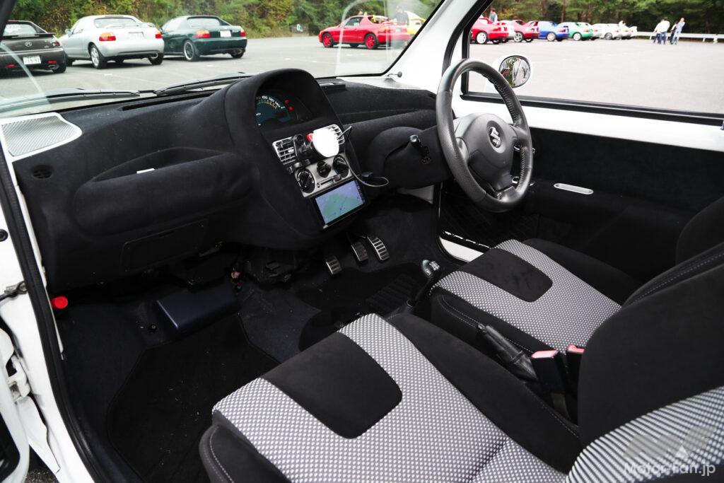 定期的にディーラーで整備を行っていることもあり、大幅な改造は行なっていないが、内装を中心に快適に過ごせるように装備を充実。シートは両席共にレカロのLX-Fに載せ替え、ステアリングは同時期のアルトやワゴンRに採用されていた本革巻きに交換している。