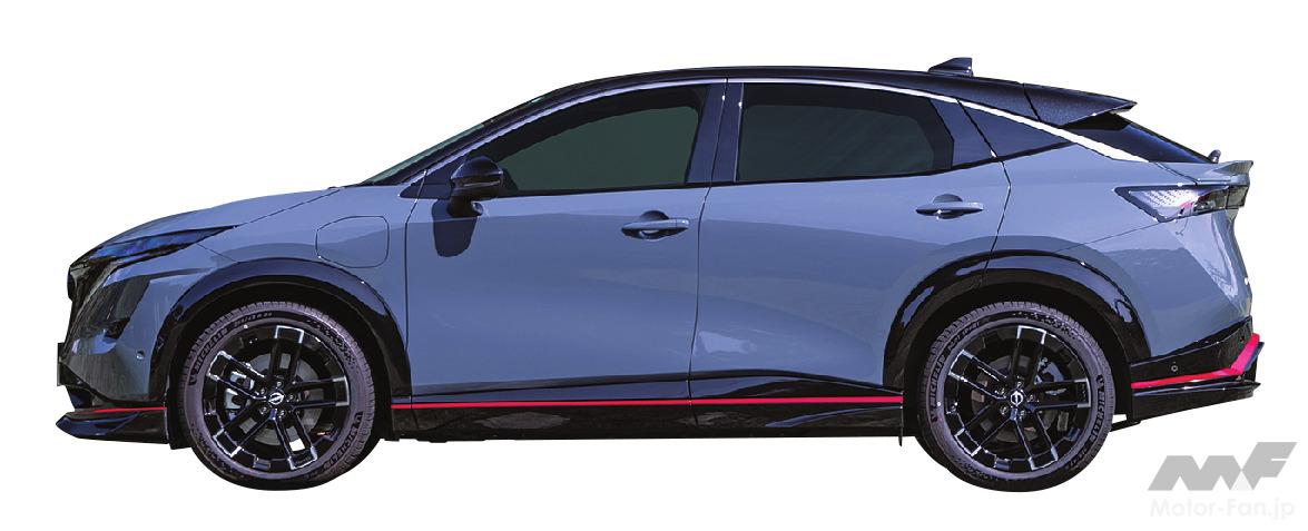 「より速く、気持ちよく、安心して走れるクルマ」これがNISMOコンプリートカーのコンセプトだ。このコンセプトを、GT-R並みの600Nmのパワーをもちつつ、GT-Rより約500㎏重い2.2tの車両重量のアリアで、どう具現化していくか……。これが最大の難関だったらしい。というのも、NISMOという名前を聞いたときに、人々がいちばん最初に思い浮かべるのはスポーティで速いクルマであり、それをBEVの頂点というだけでなく、いまや日産全体のフラッグシップとなったプレミアムラグジュアリーカーのアリアで、どう料理すればいいのか……。確かに難問である。
