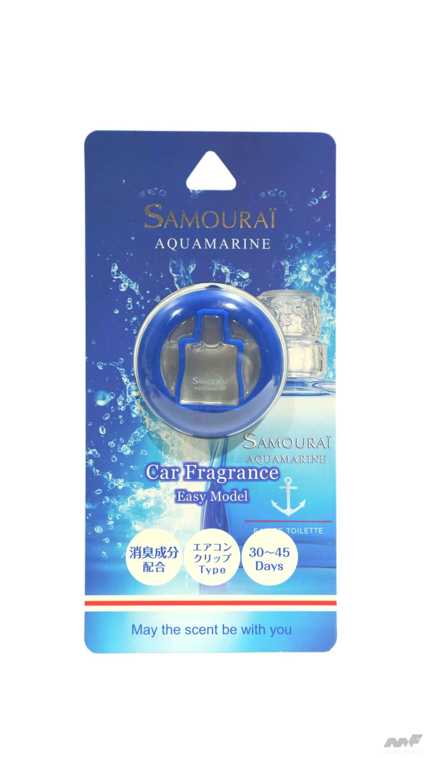 また、ブラックライトクロスにはファブリック用のミストも用意される。こちらはクルマだけでなくソファやカーテンなど家の中の空気を演出するのにもベストなアイテム。さらに、サムライシリーズの香りを手軽に楽しめるイージーモデルも新たにラインアップ。人気のアクアマリンに加え、ホワイトローズの2種類のフレーバーが用意されている。クリップ装着で30〜45日も香りをキープしてくれる。