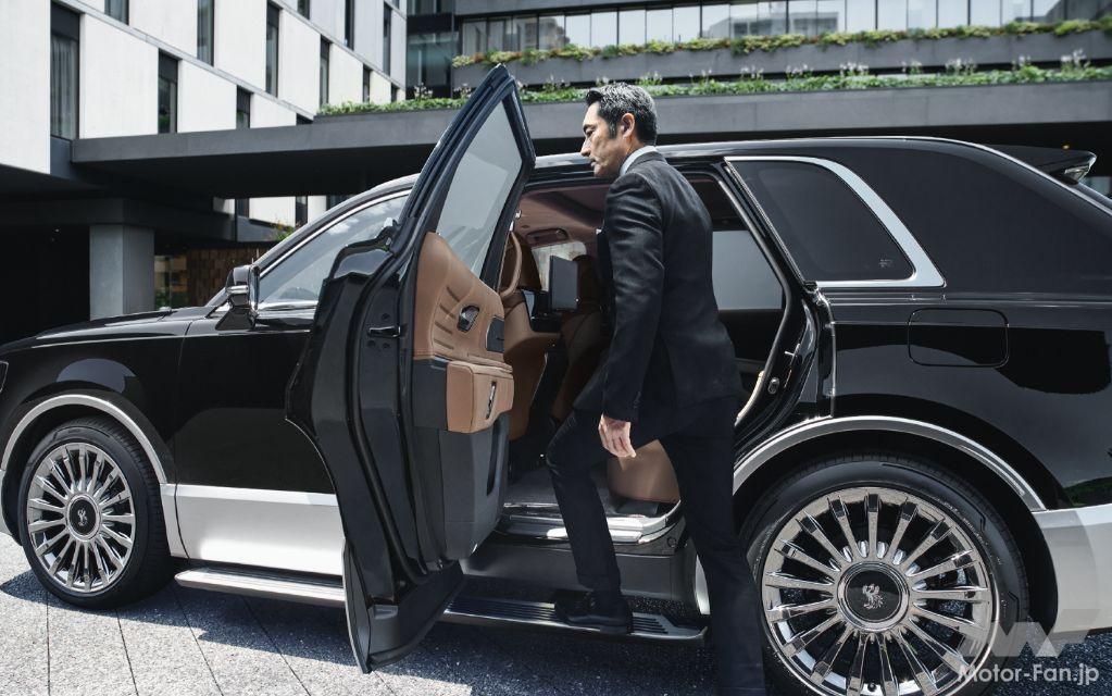 リヤドアは最大75度まで大きく開き、これにより後席乗員の乗降性を高めるとともに、中間に2段階の開度固定ポイントを設定、1段目は狭い駐車場での乗降に適した開度に、2段目はドライバーやドアマンがドアを引きやすく、スマートに降車できる位置に設定されています。ホイールアーチやバンパーの造形は控えめながらも筋肉質で、優雅さと力強さが同居しています。内装では伝統の匠の技が随所に光り、和風のモチーフを取り入れたウッドパネルや上質なファブリック・レザーが用いられています。後席はオットマン付きの独立シートで、リクライニング機能やマッサージ機能を備え、まさに移動する応接間とも言える空間が広がります。静粛性も徹底されており、二重ガラスや吸音材の多用によって、外界から隔絶されたかのような静けさを実現しています。