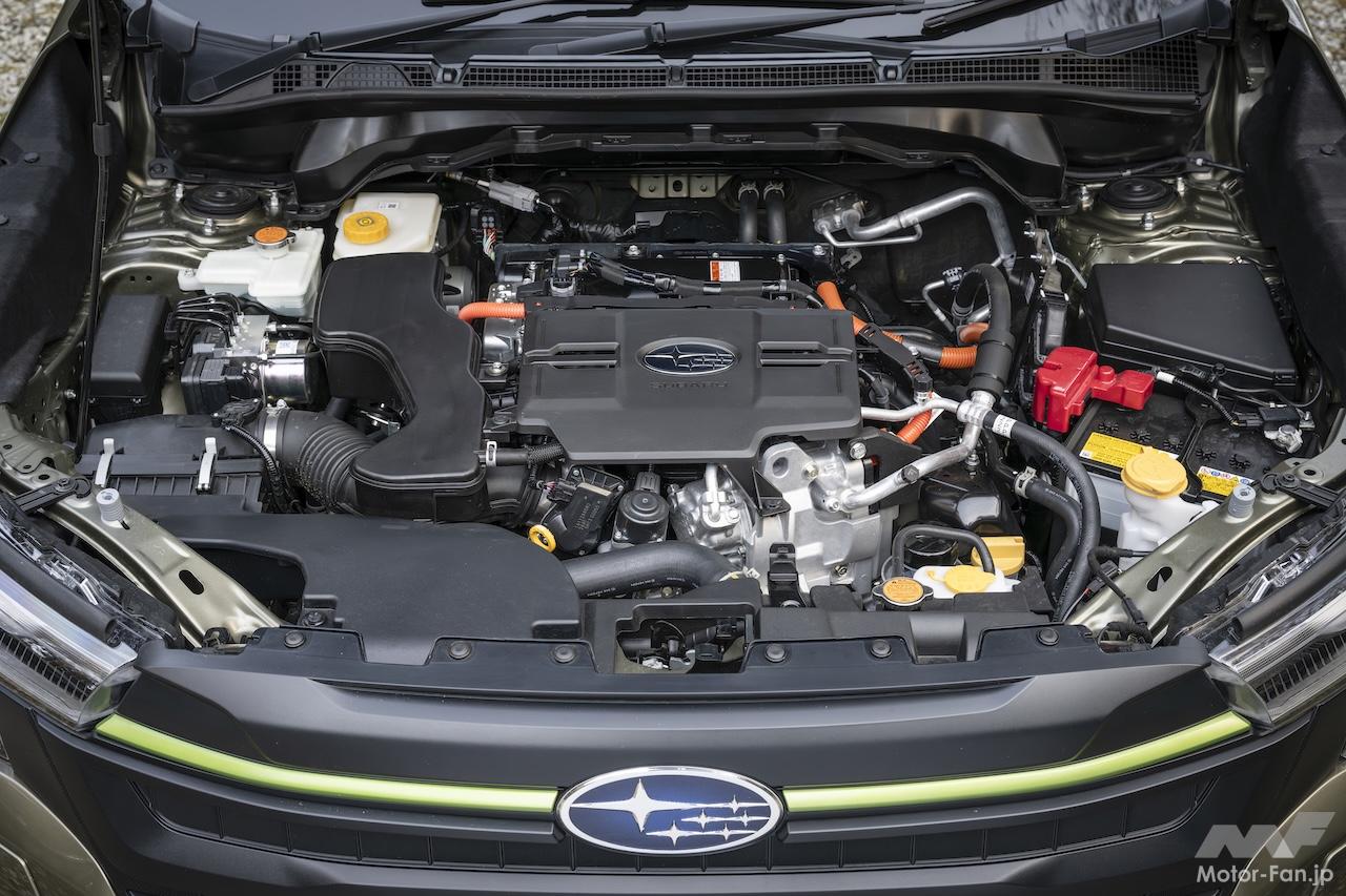 加えて、先代と新型の重量差(70kg以上)、クロストレックとフォレスターの車格の違い(マーケティング戦略の面から)も含めて2.0Lマイルドハイブリッドの採用が見送られた。ただし、開発時には2.0Lマイルドハイブリッドの採用も検討したそう。