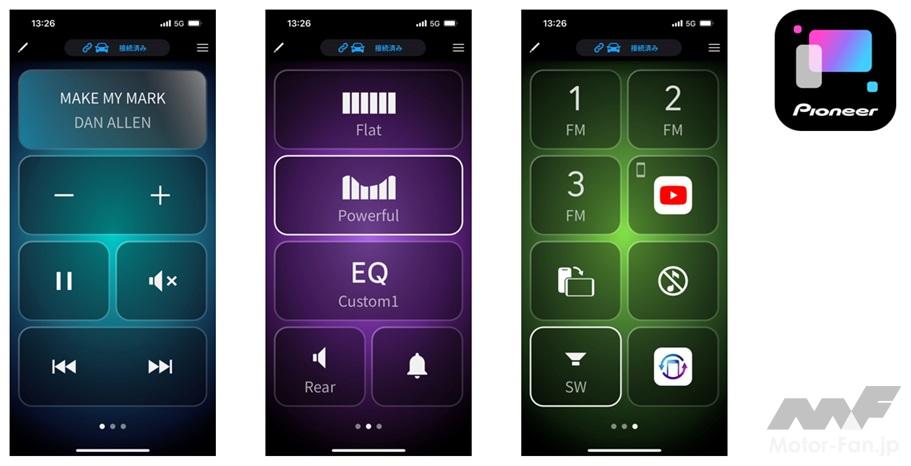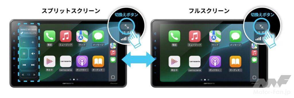 そして専用アプリの『PxLink』を利用すれば、手持ちのスマホをリモコン代わりに使え、Apple CarPlay/Android Autoの地図画面を表示させたまま、曲の再生/停止やイコライザー設定、FMラジオへの切り替えなどがOK。Apple CarPlayの場合にはメニュー画面にショートカットキーを割り込み表示する“スプリットスクリーン”機能も利用できる。