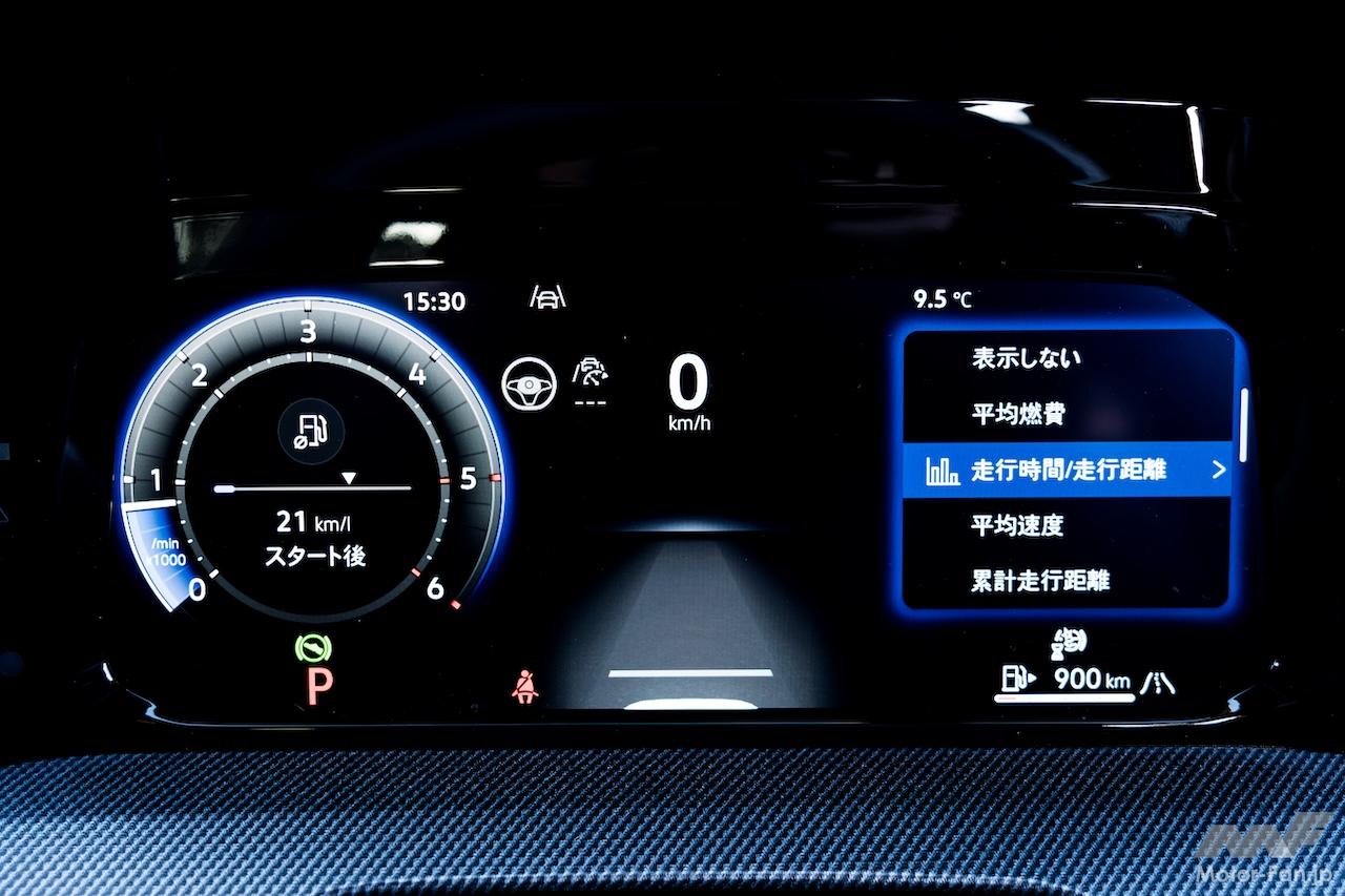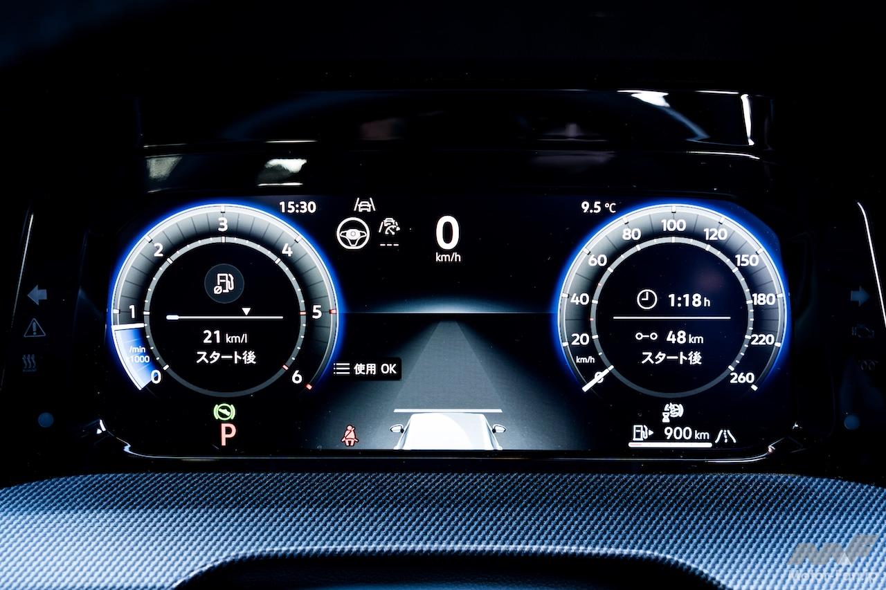 また、運転席前のデジタルメータークラスターやヘッドアップディスプレイに表示される情報も増えた上に、色使いが洗練されてより見やすくなっているのも好印象。また、ゴルフ8ではなぜかトリップメーター(区間走行距離計)が備わっていなかったのだが、ゴルフ8.5ではしっかりと装備されているなど、細かいところでも使い勝手が良くなっている印象だ。