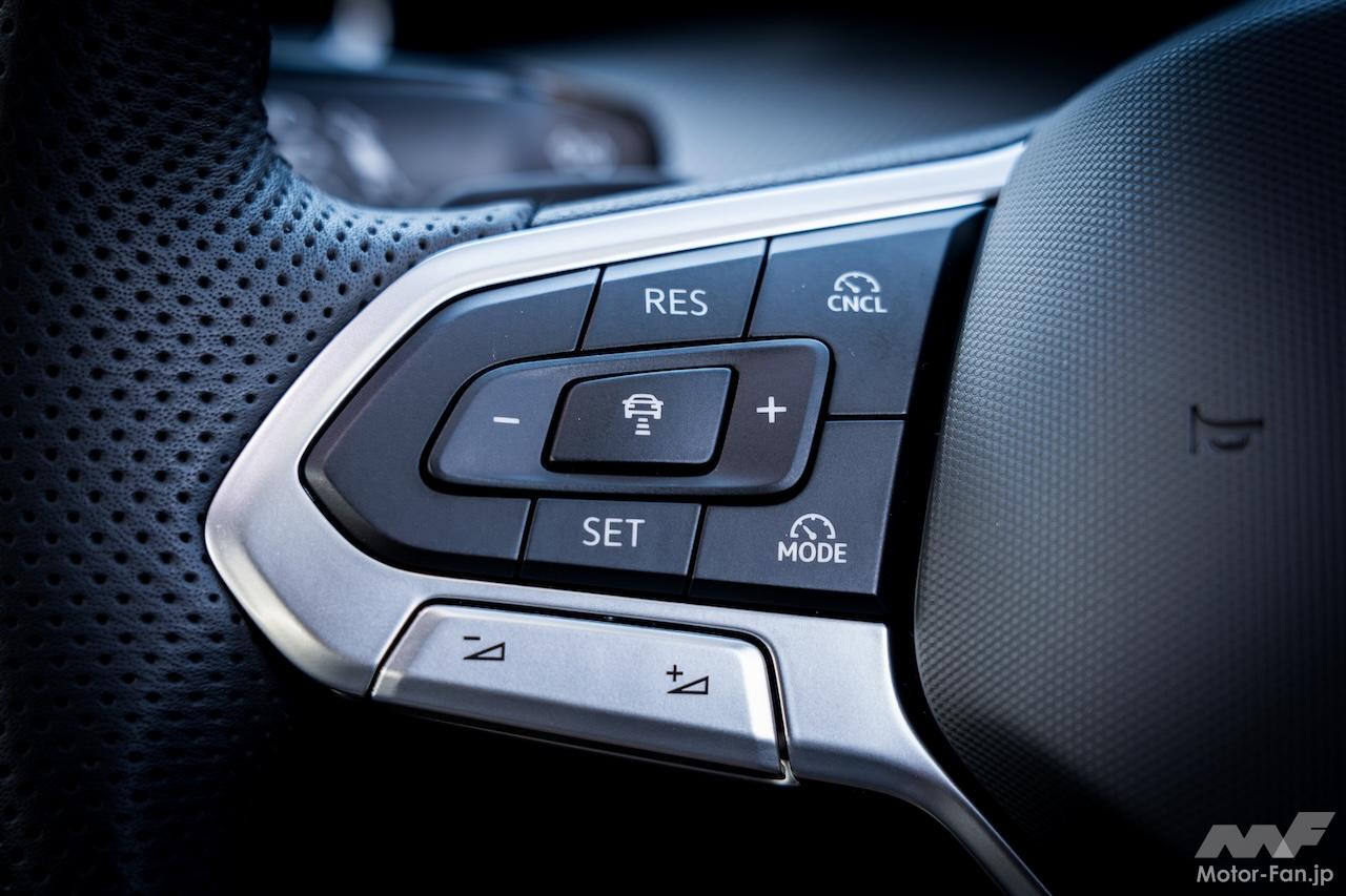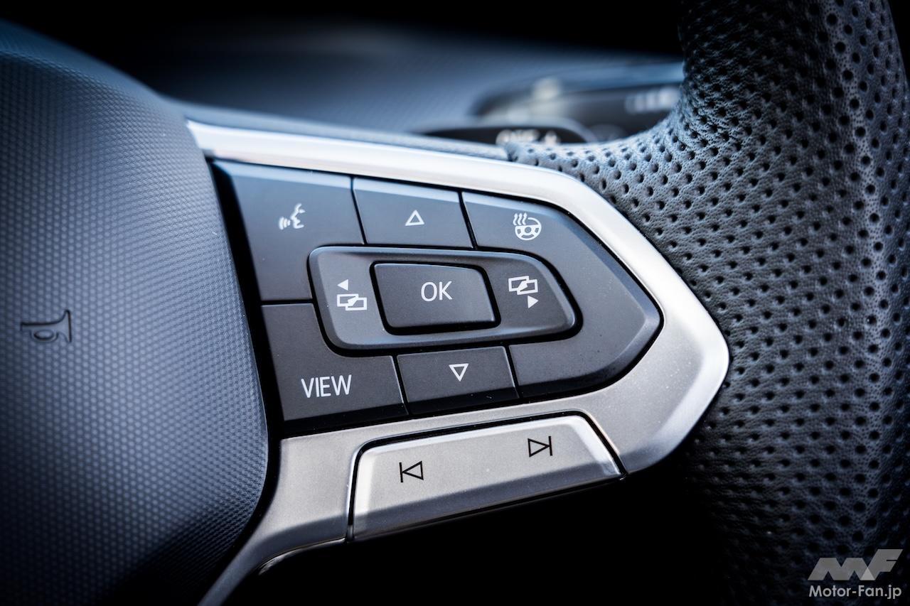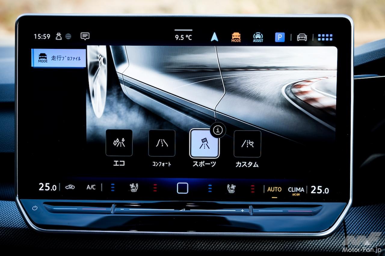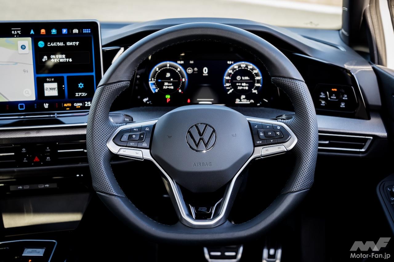 ゴルフ8では上級グレードのステアリングスイッチがタッチ式だったのだが、ゴルフ8.5では物理スイッチに変更された。見た目は確かにタッチ式の方がスッキリはしているのだが、ふとした弾みで意図せず触ってしまって誤作動することもあった。さすがにこれはやりすぎだったということだろうか、ゴルフ8.5では虚を捨てて実を取る改良を実施したというわけだ。かの発明王・エジソンが残した「失敗ではない。うまくいかない1万通りの方法を発見したのだ」という名言を思い出す今日この頃だ。