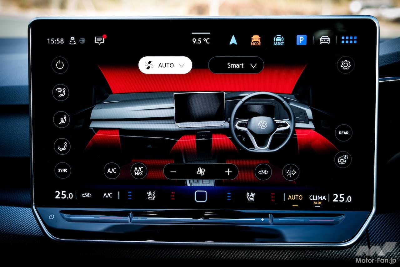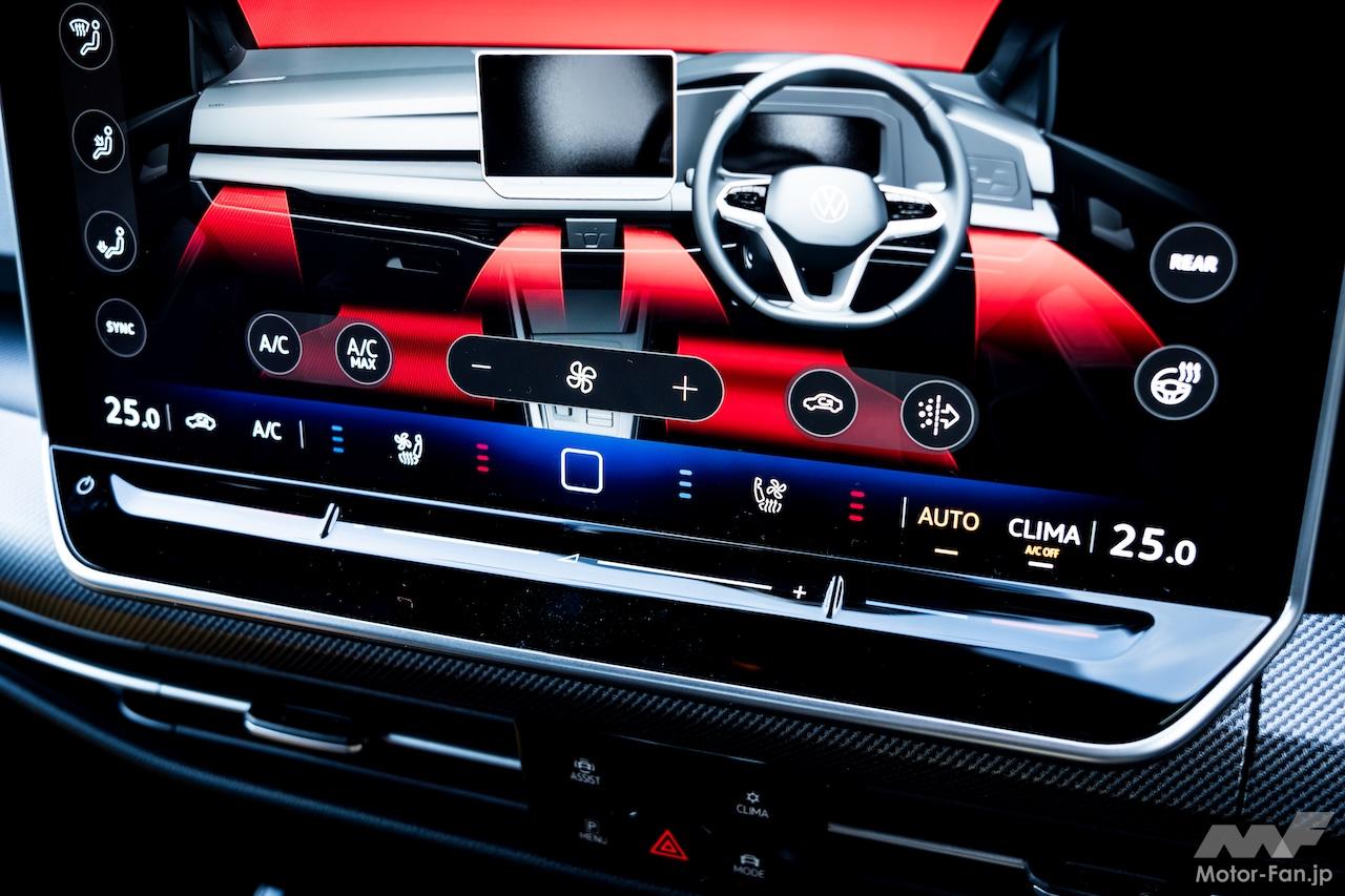 実際に約3年、オーナーとしてゴルフと付き合った経験から言うと、物理スイッチがなくなったことの弊害はあまり感じなかった。使用頻度の多いエアコンの温度調整に関しては、タッチディスプレイ下部のタッチスライダーでササッと操作が可能。また、エアコンの操作画面を呼び出すスイッチも設けられており、風量や風向きの調整も「スイッチを操作して画面呼び出し」→「タッチパネルを操作」のツータッチで可能だからだ。