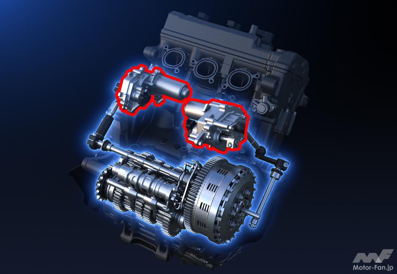 2輪車の走行をさらに楽しく広げる技術として、電子制御CVT(無段変速機)の「YECVT」や、電子制御シフト機構「Y-AMT」も紹介