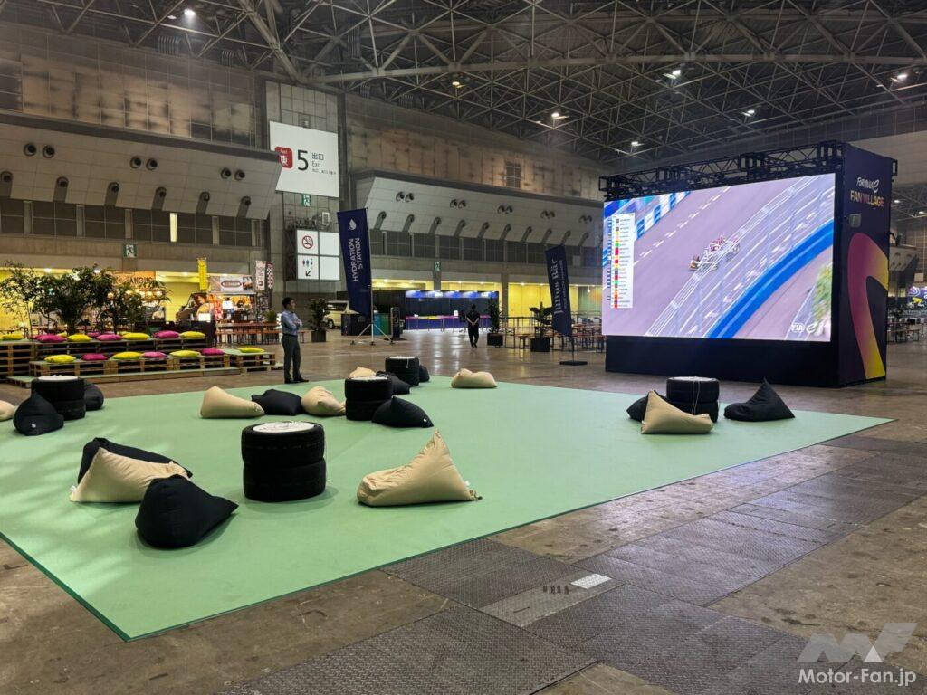 ファンビレッジは、東京ビッグサイト東展示棟を中心に展開される体験型エンターテインメントエリアだ。モータースポーツファンはもちろん、初めてフォーミュラEを訪れる一般客や家族連れまで幅広く楽しめるよう設計されており、なんと入場は無料だ。観戦チケットがなくとも参加可能という点で、都市型レースの理念を象徴する存在でもある。