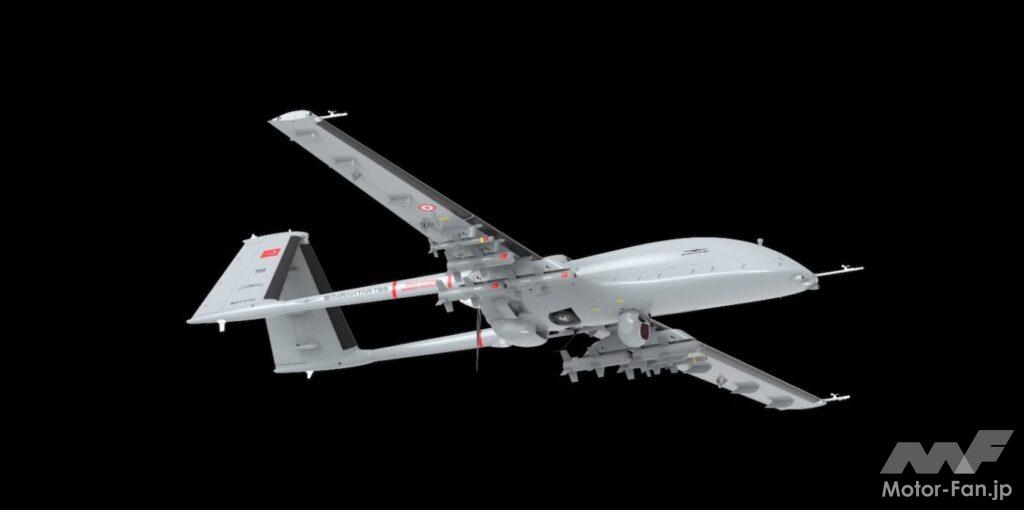 ドローンと聞くと30cm程度の小型・低価格なもの(ウクライナの最前線では自爆攻撃などに使われている)を思い出すかもしれないが、バイラクタルシリーズは「MALE(中高度・長時間滞空)」型と呼ばれる軍用モデルで、翼幅10mを超える大型のもので、高度数千mを20時間以上飛行することができる。