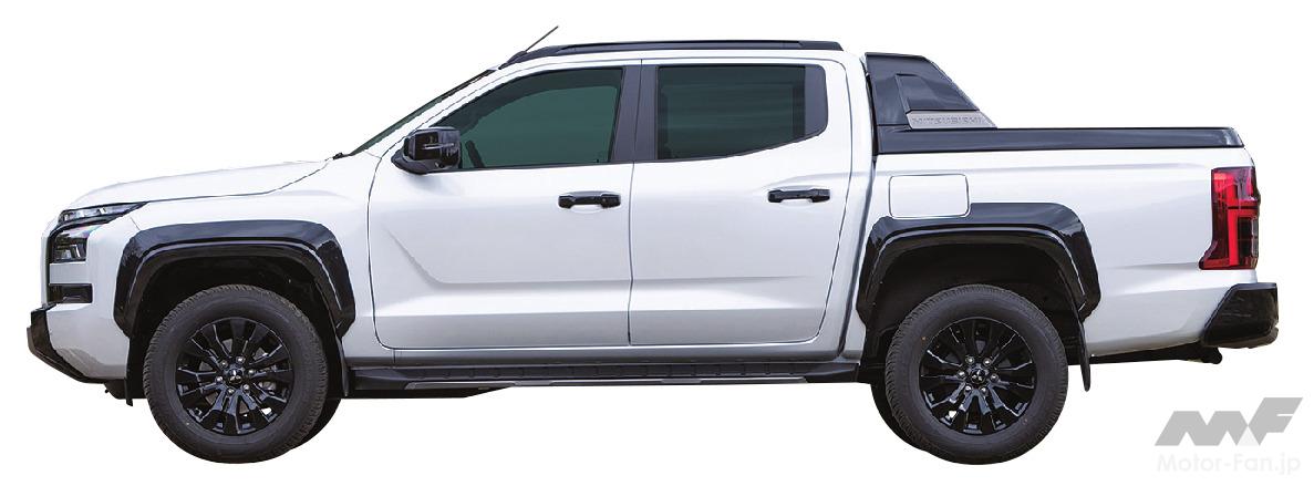 三菱でもかつて、L200(日本名フォルテ)というピックアップトラックを販売していたが、その4WDシャシーに専用ボディを架装して誕生したのが初代パジェロ。2023年末にデビューした新型トライトンは、言わばその直系血族だ。「と言ってもトラックだし、装備は必要最小限なんでしょ?」という指摘は外れ。ステアリングヒーターや前2席のシートヒーター、リヤヒーターダクトなど快適装備はもとより、コネクティッド機能にも対応。運転支援システムは三菱最新のe-Assistが標準装備となるだけでなく、トレーラー牽引時のスネーキングを防ぐ〝トレーラースタビリティアシスト〞も付いている。