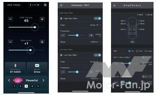 厳選された高音質パーツに加え、タイムアライメントやイコライザー、出力レベル調整など豊富な音響カスタマイズ機能によって自分好みのイイ音を実現できる。豊富なプリアウト出力(DEQ-7000Aは10ch、DEQ-2000Aは6ch)を活用すればさまざまにシステム拡張が可能だ。DEQ-2000Aでは車種ごとの車室内音響特性に合わせてチューニングしたサウンドチューニングデータ(カロッツェリア公式サイトから無料で取得/代表車種:20車種)を使って手軽なセッティングも行える。