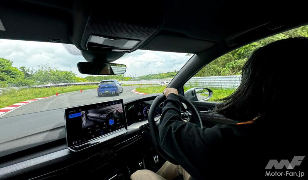 試乗の重要テーマを「トルクベクタリングが生むハンドリング」と定めたからには、そうした機能を持たないFFとの違いを知ることがもっともわかりやすい。そこで、新型ゴルフRアドバンスで数周の完熟走行をしてコースに慣れたところで、ゴルフシリーズにおけるFFホットモデル「GTI」にも試乗してみることにした。
