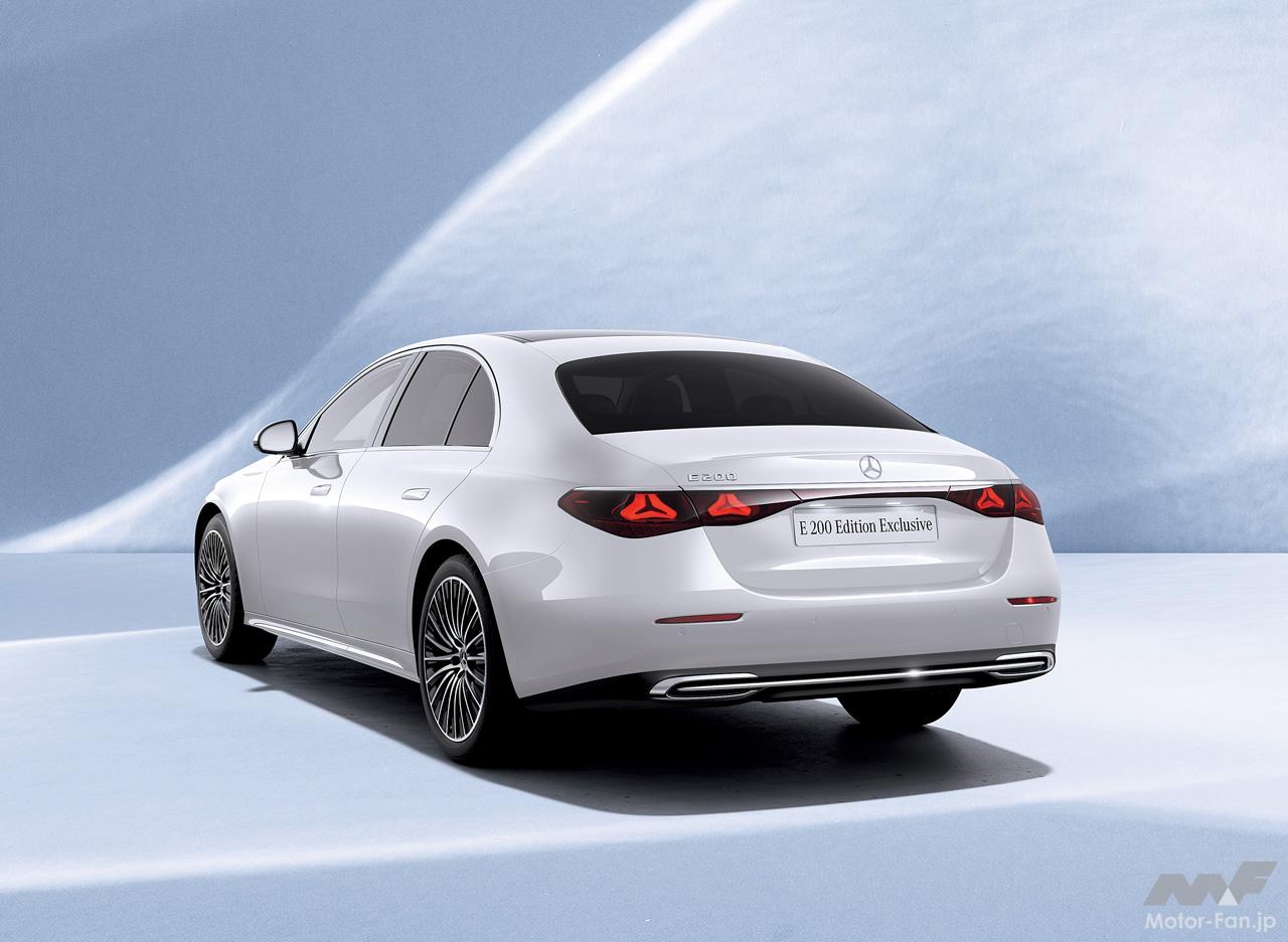 エクステリアでは、通常のE 200には設定のないエクスクルーシブラインを採用。メルセデス・ベンツの伝統的なフロントフェイスを象徴するスリーポインテッドスターのボンネットマスコットや、3本の水平ダブルルーバーを備えたラジエターグリルが、よりエクスクルーシブな雰囲気を発散する。
