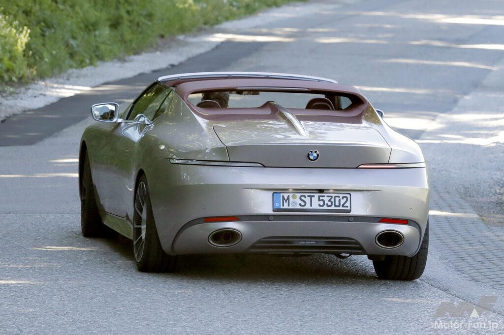 スリムなテールライトは旧型のZ8を彷彿とさせ、リヤエプロンには2つの楕円形の排気口を備えた、まったく新しいインサートが採用されている。この構成は、Mはもちろん、BMWのどのモデルにも類を見ない。スクープ班のカメラマンは、このエキゾーストパイプから発せられるサウンドが非常にパワフルで、「強烈なインパクトを残す」と語っていた。