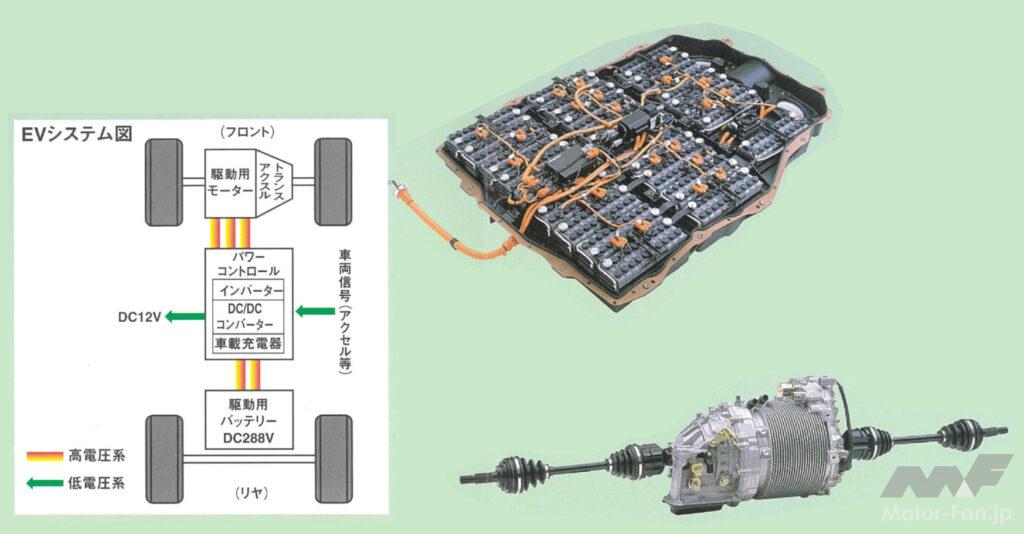 ●全長×全幅×全高:3980×1695×1675mm ●駆動用バッテリー:シール型ニッケル水素バッテリー ●車両重量:1540kg ●乗車定員:5名 ●最高速度:125km/h ●1充電走行距離(10・15モード):215km ●駆動方式:FF ●駆動用モーター種類:交流同期モーター ●最高出力:50kW/3100~4600rpm ●最大トルク:190Nm/0~1500rpm ●トランスアクスル:モーター・減速機一体型 ●タイヤ:195/80R16(低ころがり) ●車両本体価格:495万円(当時・東京価格。税抜き)