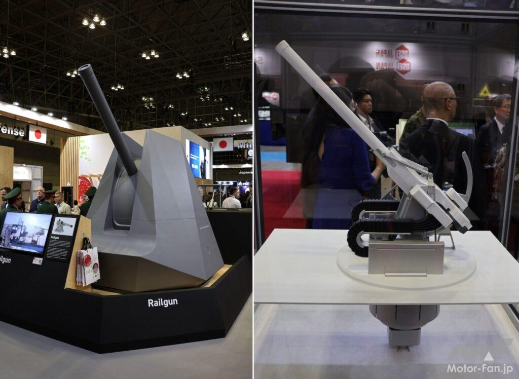 電力により超音速で弾丸を投射する「レールガン(電磁砲)」の大型模型も目を引いた。護衛艦への搭載を想定した砲塔型であり、ステルス性が考慮された鋭角のシルエットが未来的だ。ただ、あくまで現時点の“イメージ”であり、実際にこのような砲塔になるというわけではないらしい。レールガンは、あわせて内部構造の模型も展示された。