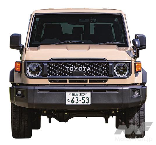 例えば生活圏内に10ヵ所の難所があったとする。フルモデルチェンジを行なって乗り心地や使い勝手が大幅に向上しても、10ヵ所の難所の内、1ヵ所でも立ち往生すれば生還できなくなる。そこでユーザーは「ランドクルーザー70を変化させずにつくり続けて欲しい」と願う。その結果、40年間にわたりフルモデルチェンジしていない。言い換えれば、84年の登場時点で生還できるクルマとして卓越した性能を備えていた。その一方で悪路走破力を下げずに進化も図っている。フロントサスペンションは車軸式コイルスプリング。リヤサスペンションは初代からのリーフスプリングによる車軸式を踏襲する。エンジンは直列4気筒2.8ℓクリーンディーゼルターボで、6速ATを組み合わせる。