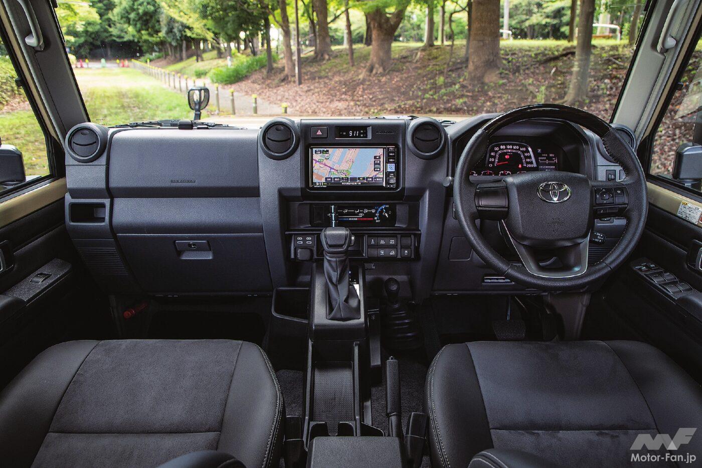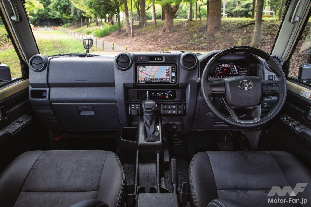 試乗してみると、まさに新旧の機能が混在していた。2.8ℓクリーンディーゼルターボは運転感覚が新しい。実用回転域の駆動力が高く、発進直後の1300rpm前後から過給効果を感じる。3000rpm付近では、アクセルペダルを踏み増すと駆動力が即座に盛り上がり、ディーゼルの力強さを実感できる。1980年代のランドクルーザー70が搭載したターボを装着しない3.4ℓディーゼルは、回転感覚が粗野で、最高出力は98PS、最大トルクも23㎏mだった。乏しい動力性能を5速MTを駆使してフルに引き出す楽しさもあったが、今のディーゼルは、動力性能が2倍以上でATも6速だ。クリーン性能も格段に向上している。