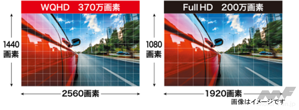 ■最大記録解像度:フロント 2560×1440(WQHD)・リヤ 1920×1080(フルHD)