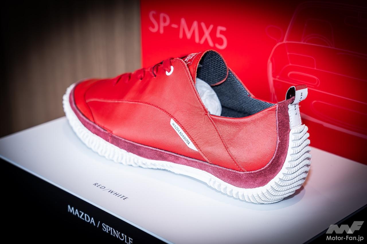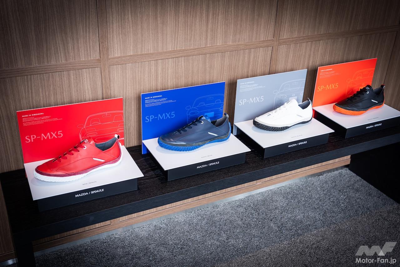 「SP-MX5」は前述のとおり、マツダとスピングルカンパニーの両ECサイトですでに発売が始まっている。また、その発売を記念して東京・南青山のブランド体感スペース「MAZDA TRANS AOYAMA」では「SPINGLE展」が6月22日まで開催中だ。「SP-MX5」の現物を見て触って試着することができるほか、スピングルがシューズ製造で実際に使っている足型や工具などの展示が行われている。この機会に、ともに広島に本拠を置く両メーカーのものづくりに対するこだわりを体感してみてはいかがだろうか。